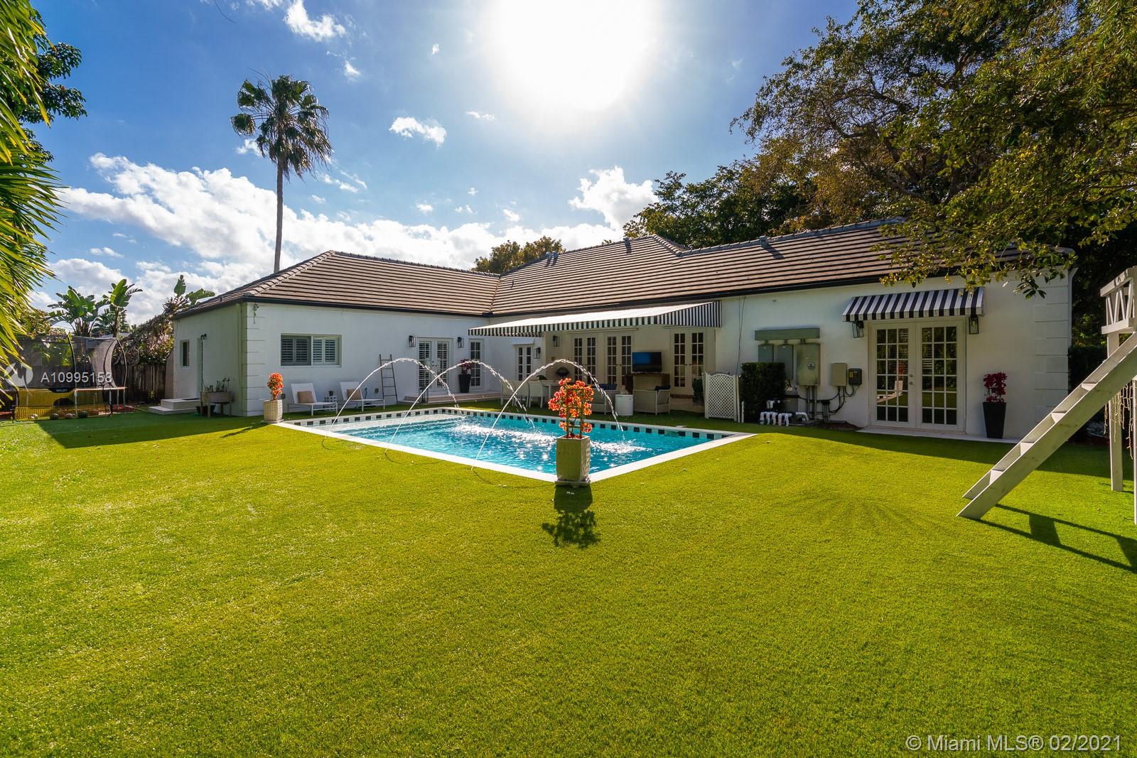 Exceptional, walled & gated one story home on a tranquil Pinecrest street. 5 bedrooms, 3.5 baths. Beautiful foyer entry, original millwork & crown moldings. Living room with stunning original wood flooring. Vaulted ceilings. French doors bring in abundant natural light. Newly remodeled, modern farmhouse kitchen with exposed brick & eat-in breakfast nook. Converted garage to a family/playroom complete w/ built-in wall unit. Amazing master suite with large walk-in closet complete with custom cabinetry. Oversized En-suite master retreat, marble tiles, large tub & separate shower. Turfed backyard full of lounging/entertaining areas, a treehouse, & stunning pool w/beach-style entry. A true Oasis!! Both master suite addition & pool completed in 2016! This home is a Must-See! More photos to come!