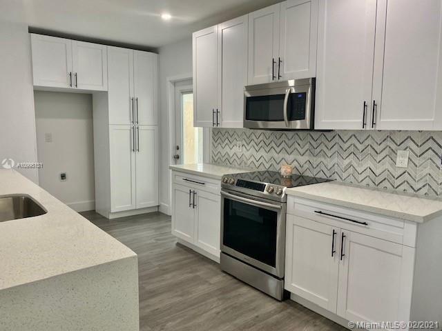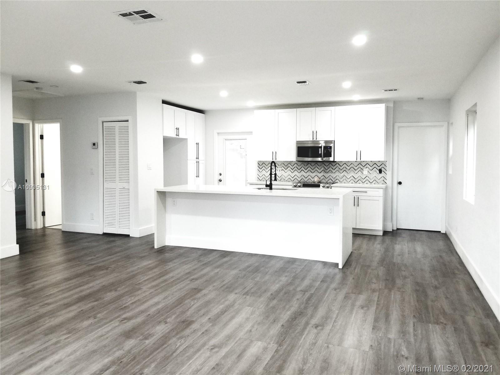 Open concept home that smells like NEW! This 3 bedrooms 2 baths totally has been beautifully remodeled with convenient brand new hurricane impact doors & windows, including front and back yard access door. Overextended kitchen with gorgeous quartz countertops, white custom cabinets, deep sink, stainless steel appliances and so much more. Tasteful new vinyl floors throughout. Upgraded bathrooms with double sink, new shower heads and modern tile floor. Brand new tankless water heater, new stylish bedroom and closet doors. Oversized backyard with room for a pool. Utility room with washer and dryer. Air conditioning is 2015, roof is 5 years old. No restrictions, No Association, No Pets restrictions. Commercial vehicles welcome. This is the ONE! Contact listing agent for more information.