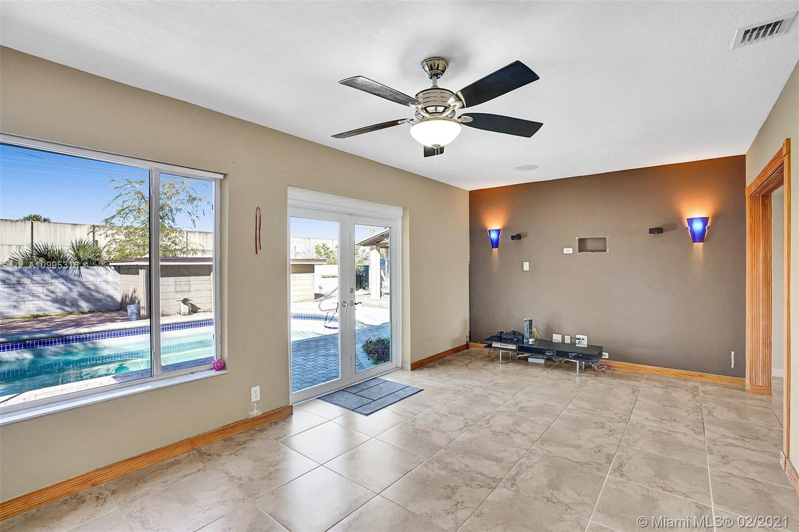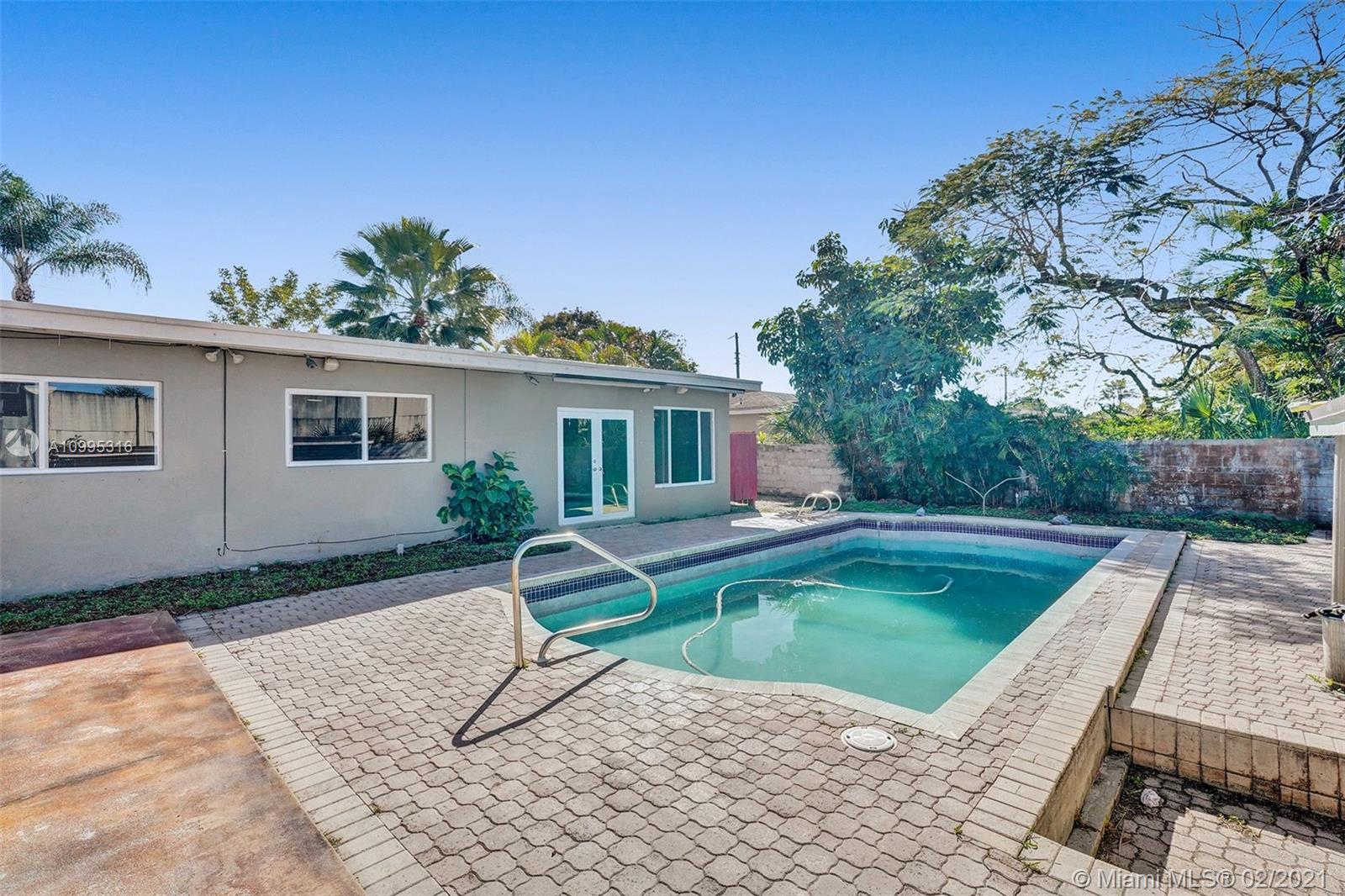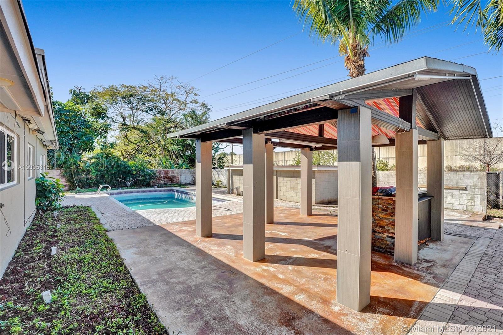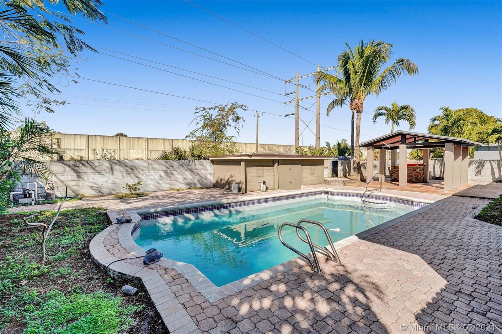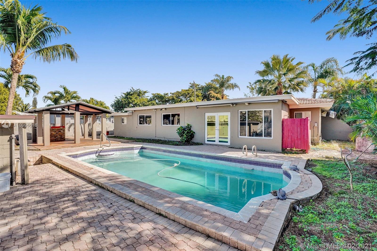 Move-in condition Pool house in Plantation is looking for new homeowner who likes to entertain their friends or just spend family’s endless relaxing hours outdoor in their own paradise back yard! This one story-house has 3 bedrooms plus 1 addition room could use as den/office/baby room. Spaces living and family room are filled with sunlight! Newer kitchen and appliances, large 1-car garage has a lot of storage space. Impact French doors will open up to large 26x11ft pool, almost 700sf pavers around the pool area and 400sf paver on the side yard! 14x14ft gazebo surrounded by palm trees. An accessory concrete building has laundry area, and storage room. Flat roofs were sealed recently; tile roof checked. Washer/dryer/water heater 1 year-new, AC 2017, surrounding speakers and security camera.