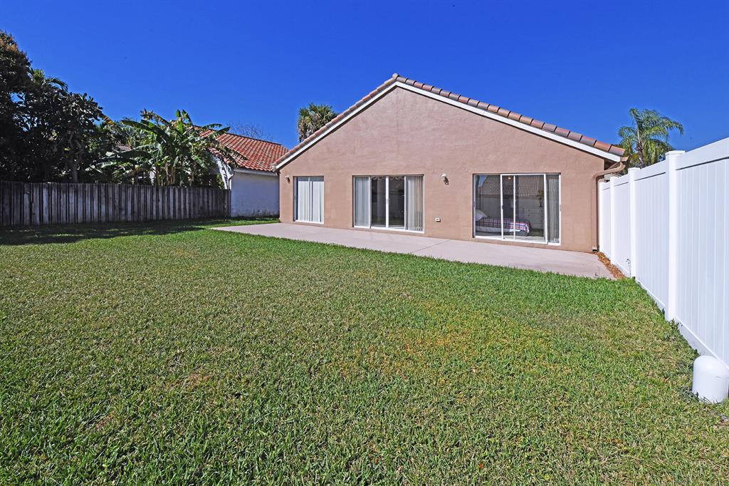 Spacious, 3 bedroom + den/ 2 bath home with a 2 car garage in desirable gated Boca Raton community. 1660 sq ft under air with vaulted ceilings & split bedroom plan. You will enjoy the sunny, southern exposure , nice patio & large fenced yard for outdoor fun! The roof , air conditioner & fence are 2 years old , exterior paint & gutters less than 2 years and sprinkler system done in July 2020. Reasonable HOA fees include, security entrance gate, community pool, tot play area, cable and common area lawn care. The eat-in kitchen is equipped with stainless steel stove & refrigerator plus a washer & dryer in a convenient laundry room. The master suite has a large walk- in closet plus another closet, oversized shower, & dual sinks.Plenty of closet space throughout your home.