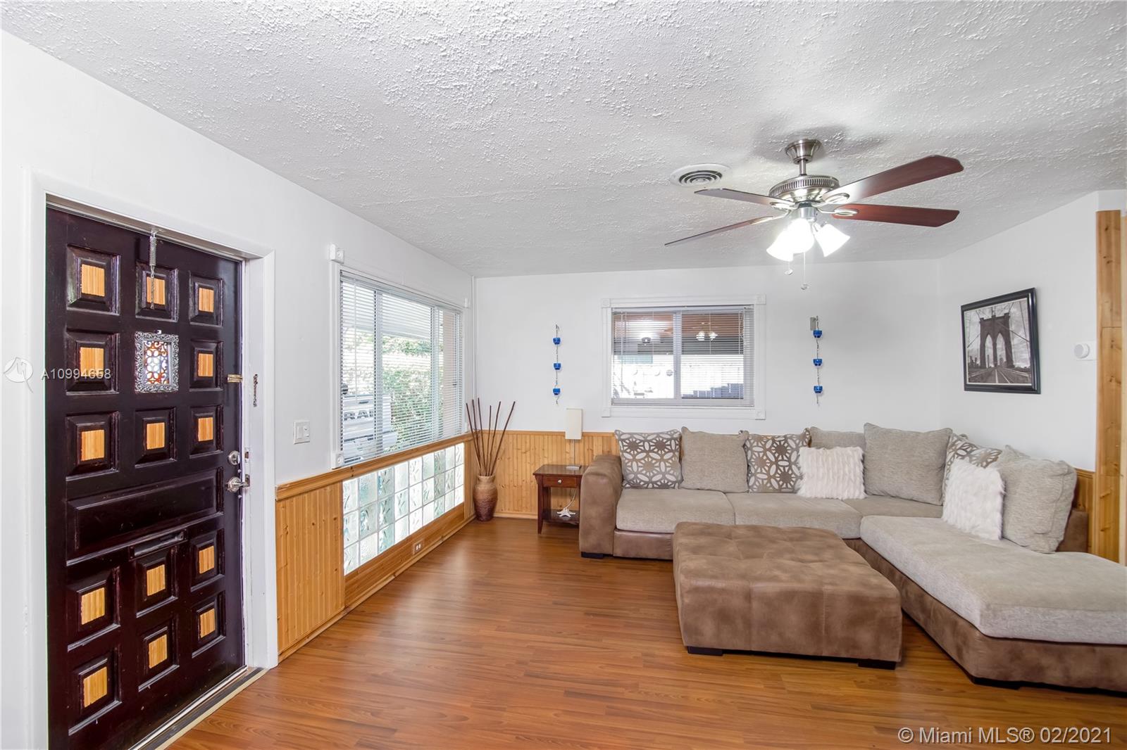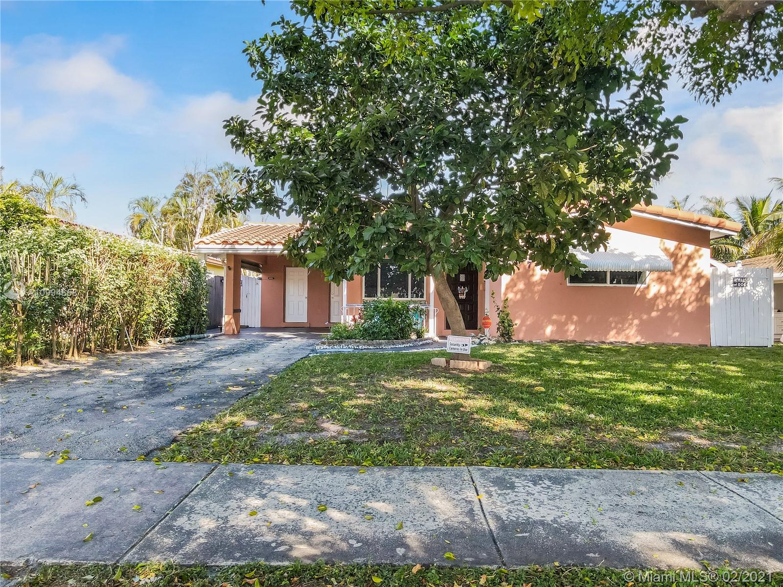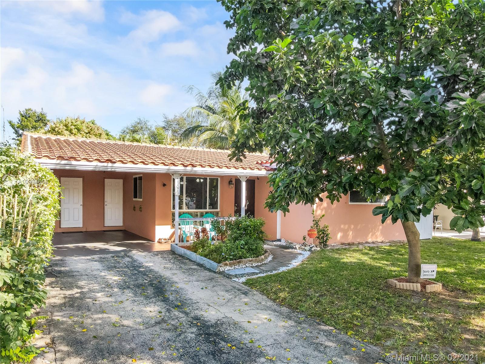 Well-maintained 3 bedroom 2 bathroom home in the desirable Hollywood Hills area . Home features laminate wood flooring (Terrazzo floor under), new roof installed in 2016 and gas powered stove, dryer and water heater . Spacious backyard with assorted fruit trees that include mango, avocado, starfruit, nispero, guanabana, hog plum, calamondin. Security cameras in place, not connected. Single Car Carport. Great school district and centrally located to shops, restaurants and a short 16 minute drive from the beach.