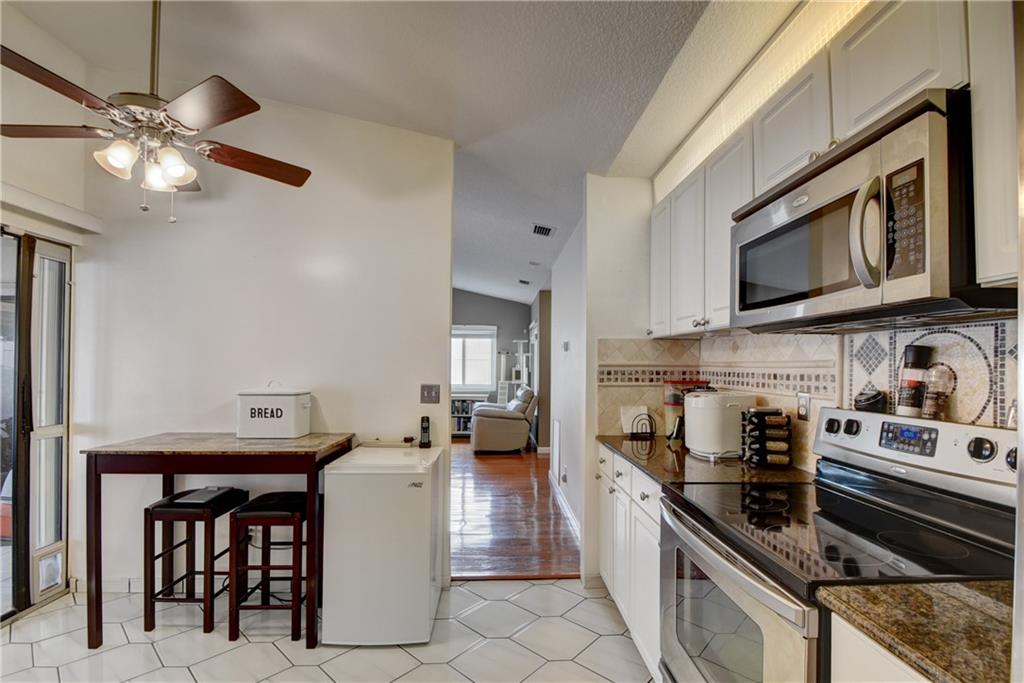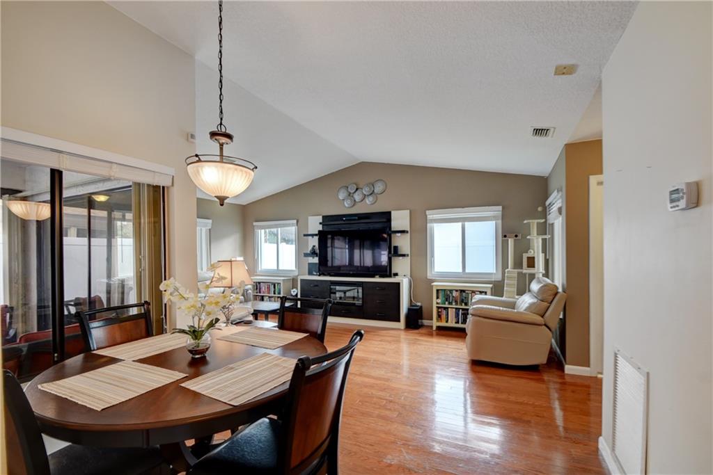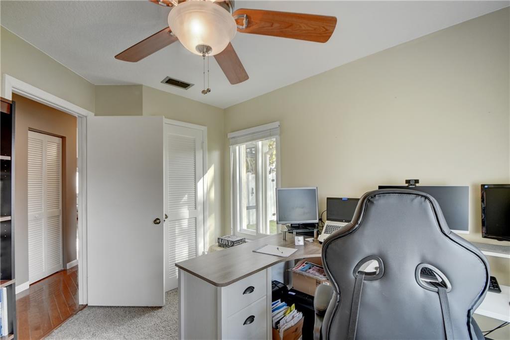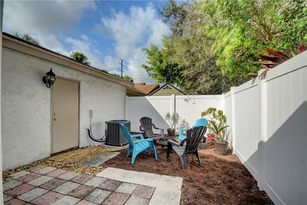 Charming 2 bedroom 2 bath villa style attached home with spacious fenced yard and 2 car garage. Yard has plenty of room for storage or a outdoor retreat. Popcorn ceilings just removed! Ceilings have brand new finish and paint. Porch is enclosed, just open the sliders for additional living space when entertaining. Impact windows and shutters. Large master with walk in closet. Kitchen has granite counter tops and stone back splash. Wood floors though out the main living area. This home is located on a cul-de-sac in the highly sought after community of Rainberry Park. Rainberry Park offers a security, large oversized community pool, jacuzzi, clubhouse, tennis, playground, basketball and more. Pet friendly and low HOA-$140 monthly, no mandatory membership fee, all ages welcome.