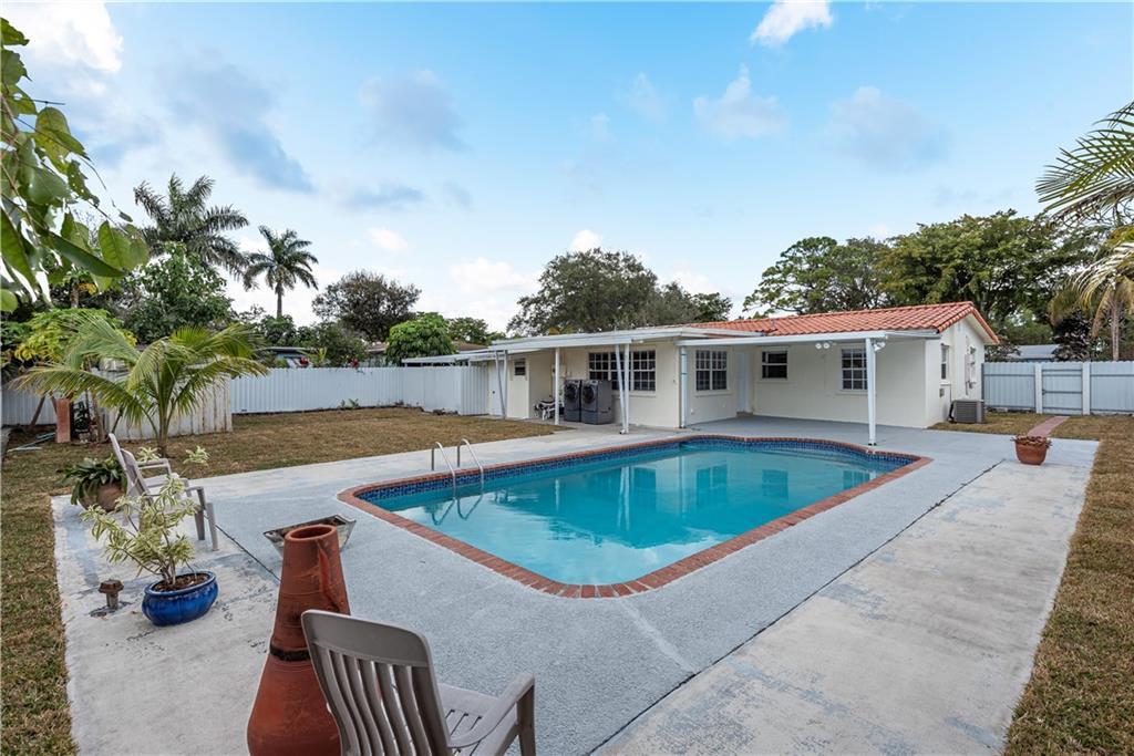 Cute 3 bed- and 2 bathroom single story pool home in the desirable Riverland Village area is now ready for a new owner. The main part of the house consists of a generous and bright living and dining area, the kitchen, the master bedroom and a second bedroom. The guest suite has its own entrance and is separated from the main house. However, this 3rd bedroom may easily be reconnected to the main house by opening up the wall and adding a door. Recent updates include fresh new paint inside and outside, new refrigerator, updated landscaping with new sprinkler system. The 3rd bathroom serves as a cabana bath. Large carport fits at least two cars, and there is plenty of additional parking in front of the house. 3 minutes to I-95 and 7 minutes to Downtown Fort Lauderdale and Las Olas.