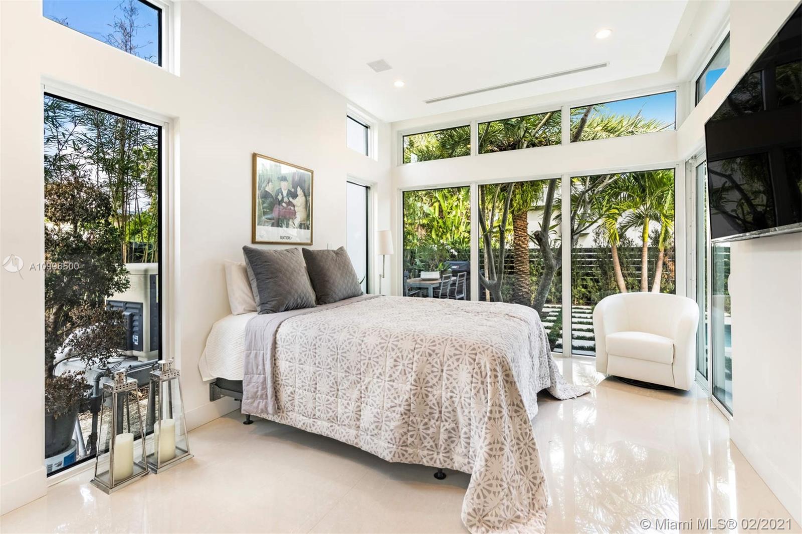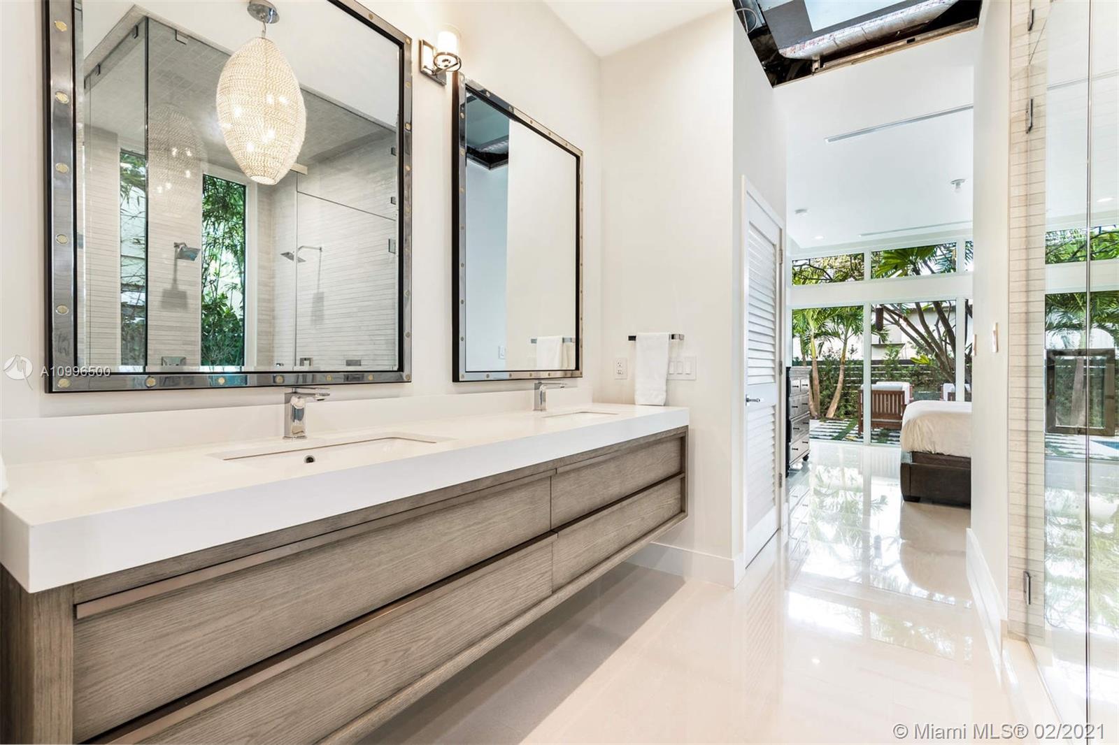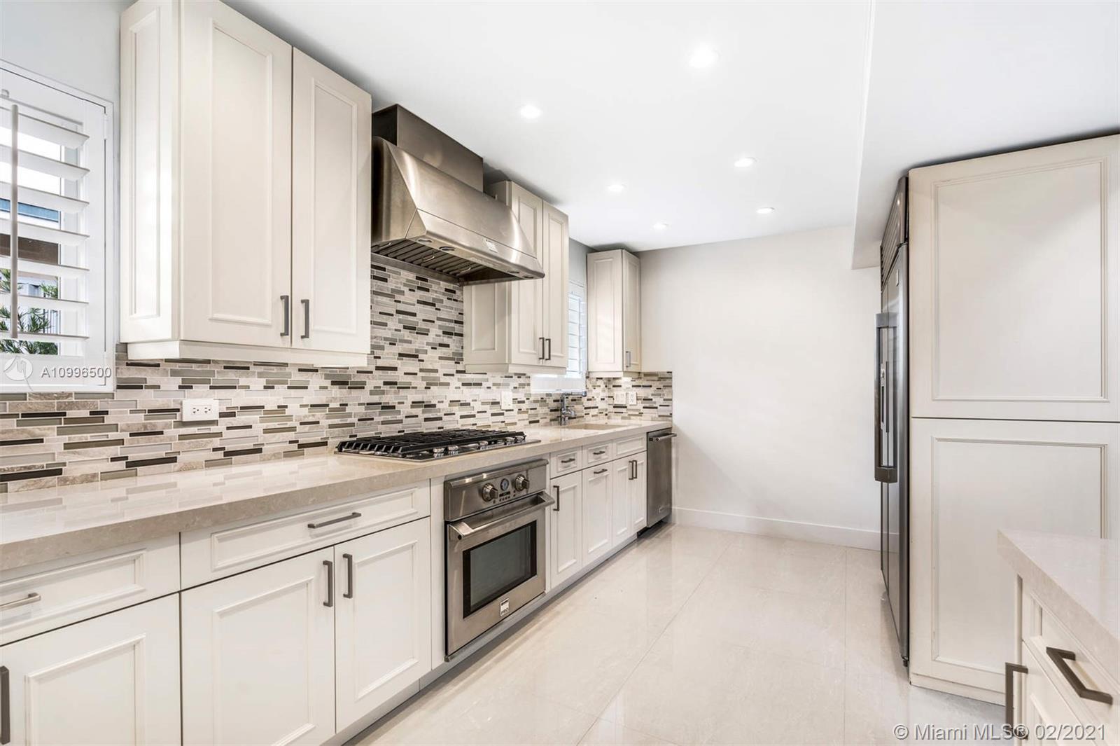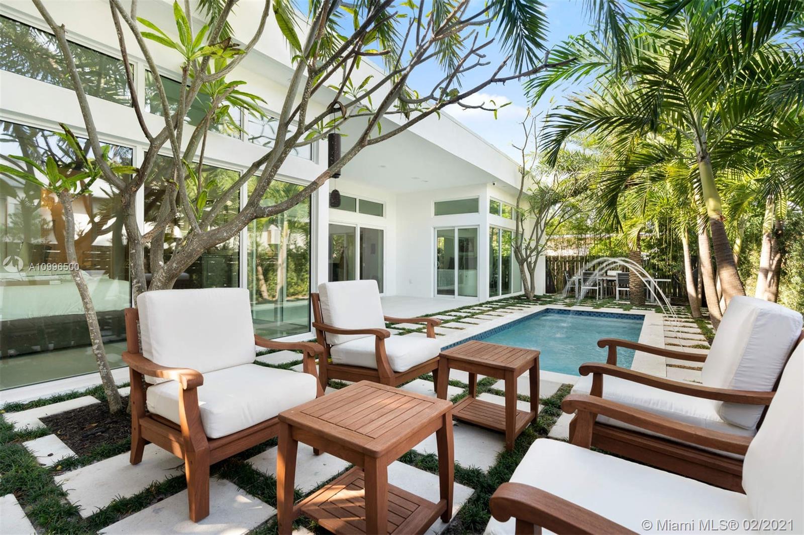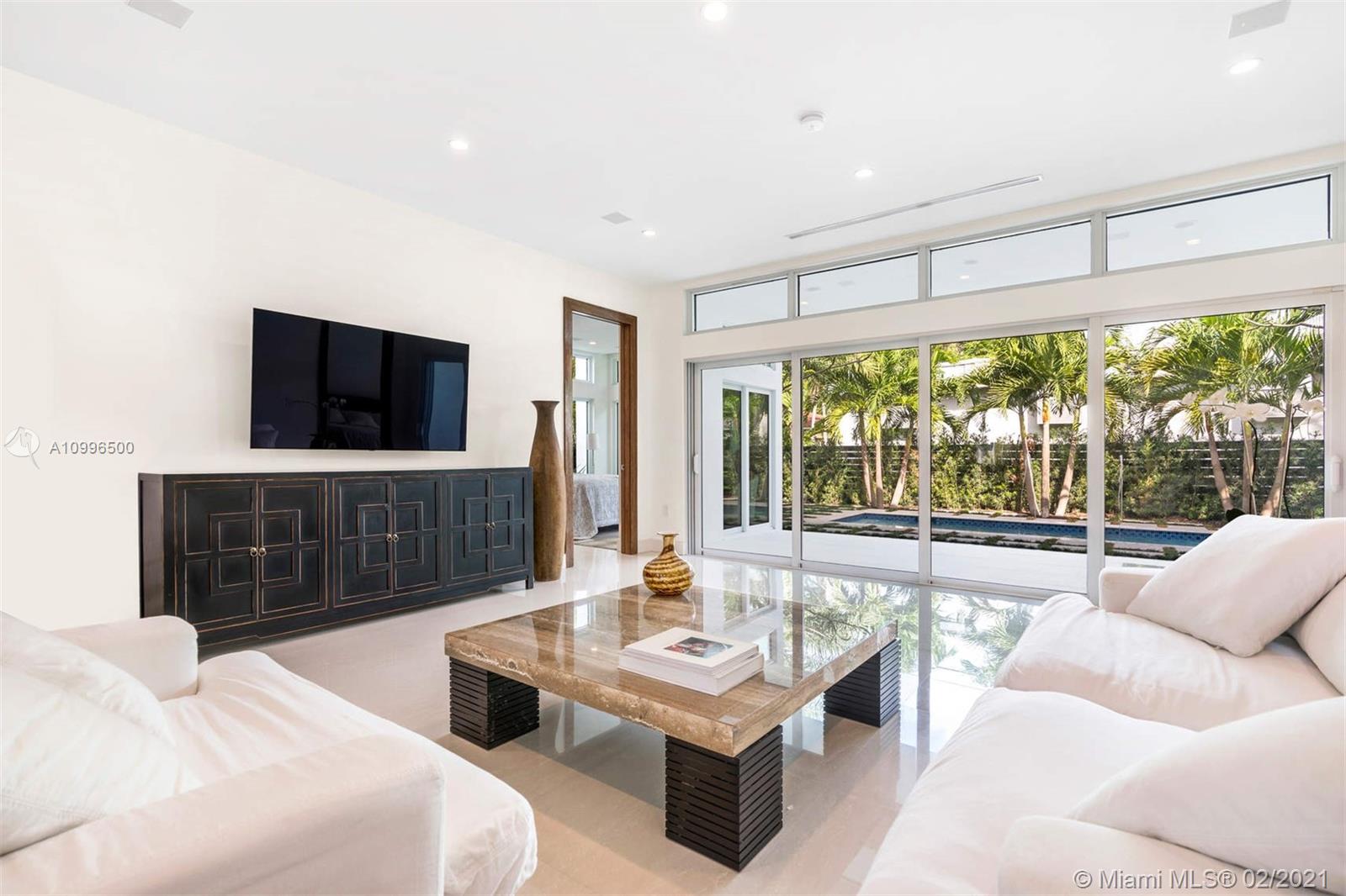 New construction.Mid-century one story home adjacent to the newly finished Ritz-Carlton Residences in Miami Beach. Quiet residential neighborhood in the heart of Miami Beach. Grand reception areas with vaulted ceilings and comfortable open spaces leading to the landscaped patio featuring soothing sounds of the resort style pool with water fountain. Large master suite floor to ceiling windows. Spa inspired master bath with rain shower and steam. Open kitchen with Viking appliances and gas range. Separate guest quarters with private entrance and kitchenette. Functional floor plan. Modern comfort in an understated elegant feel for a perfect Miami Beach lifestyle.