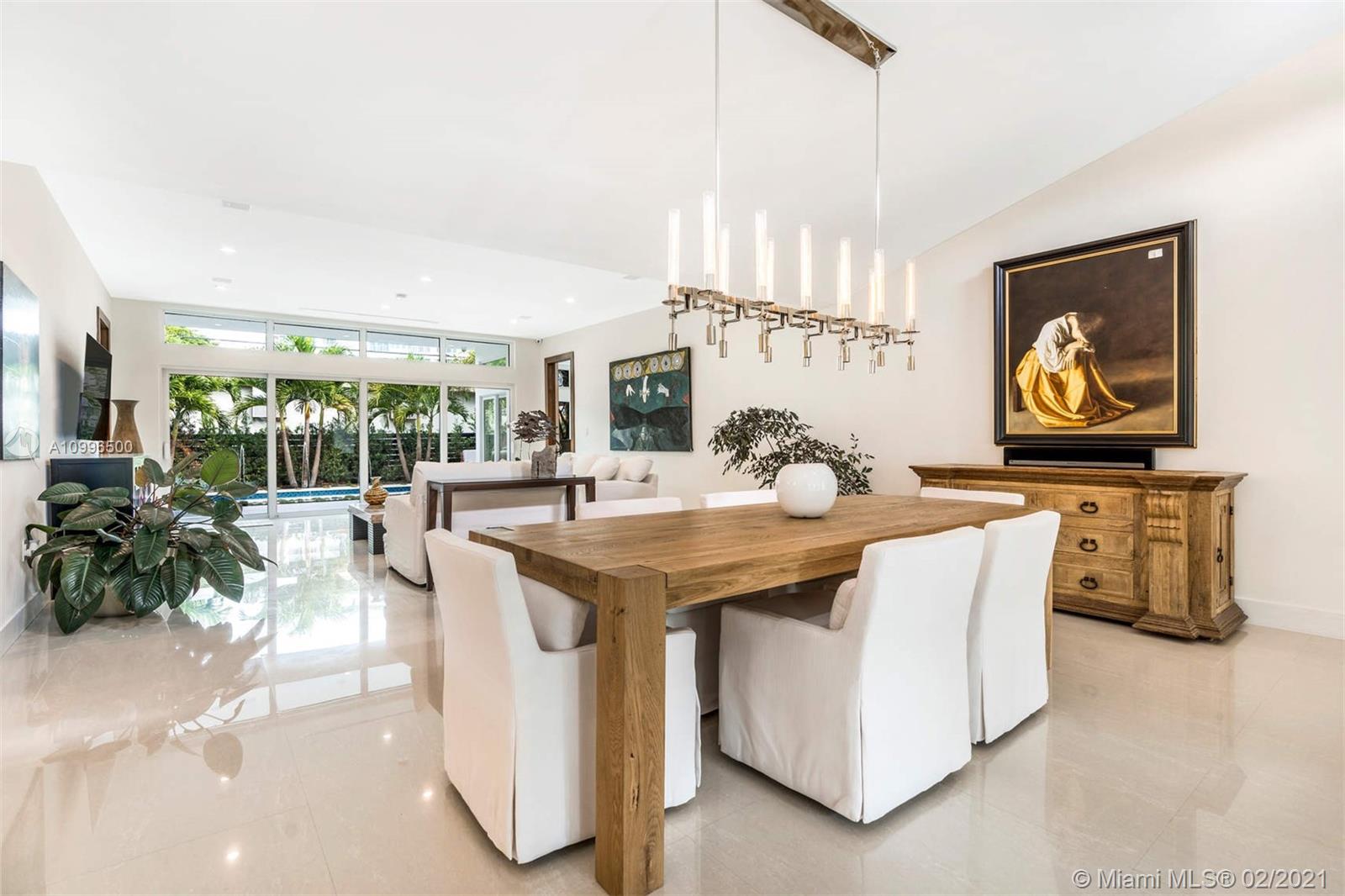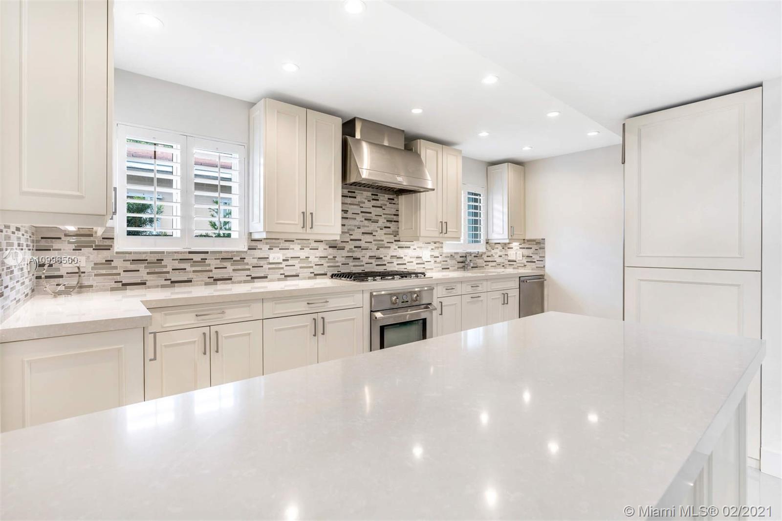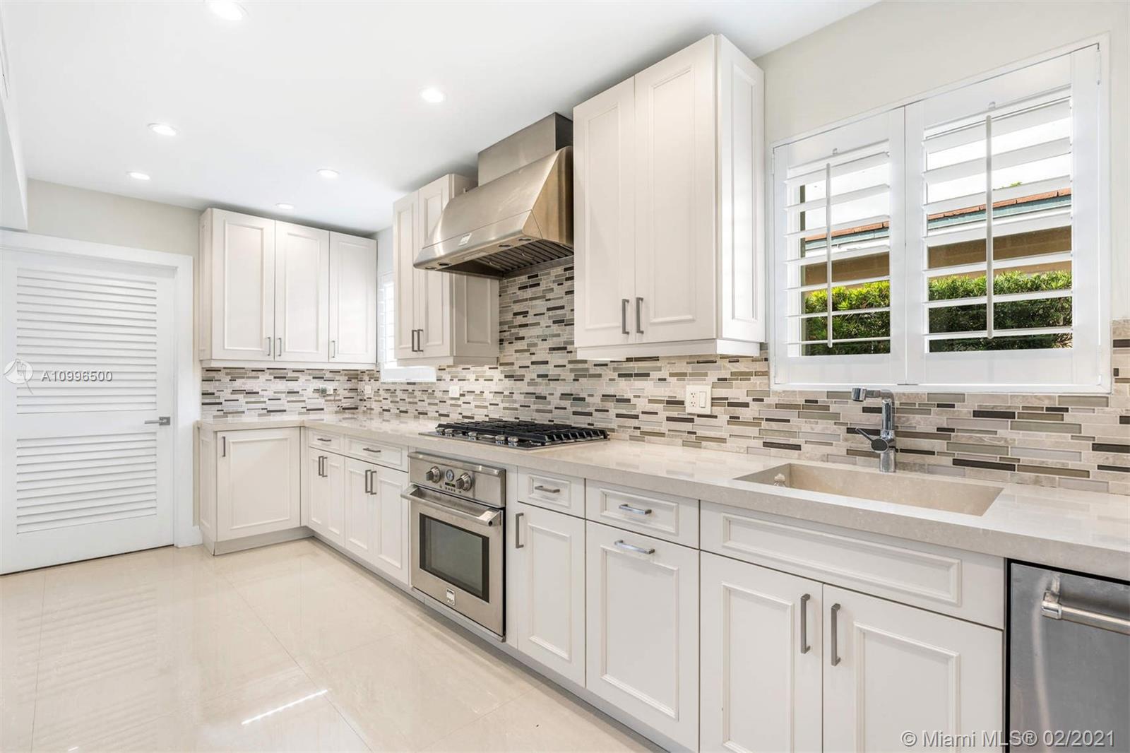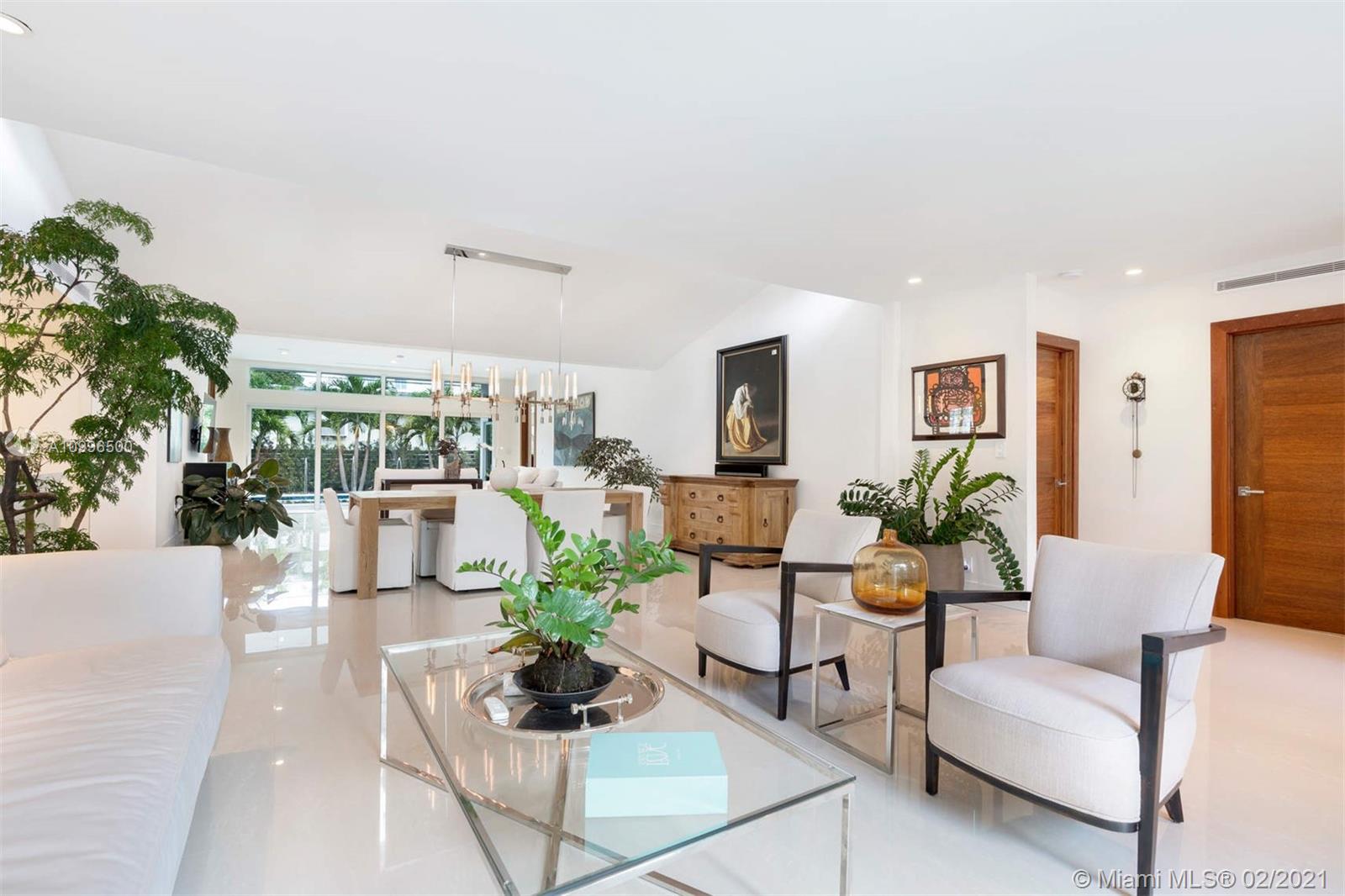 New construction.Mid-century one story home adjacent to the newly finished Ritz-Carlton Residences in Miami Beach. Quiet residential neighborhood in the heart of Miami Beach. Grand reception areas with vaulted ceilings and comfortable open spaces leading to the landscaped patio featuring soothing sounds of the resort style pool with water fountain. Large master suite floor to ceiling windows. Spa inspired master bath with rain shower and steam. Open kitchen with Viking appliances and gas range. Separate guest quarters with private entrance and kitchenette. Functional floor plan. Modern comfort in an understated elegant feel for a perfect Miami Beach lifestyle.