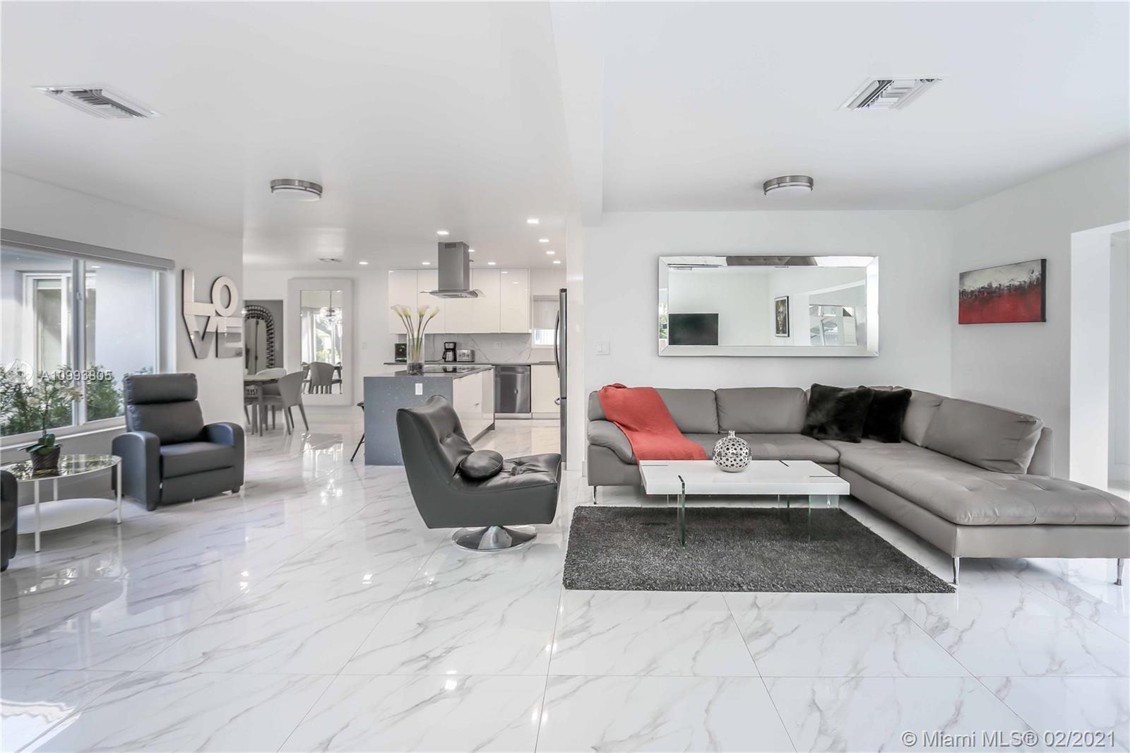 Great corner property, double lot, with over 15 thousand sq ft lot, this house features 4 Bedrooms, 3 Baths, updated kitchen and bathrooms, 32 x 32 porcelain tiles throughout, open concept split floorplan, kitchen with island, quartz countertop, new stainless steel Samsung appliances, white cabinetry, spacious laundry room, room for pool, circular driveway, fenced backyard, impact windows throughout, tankless water heater, roof redone in 2008, electrical redone in 2018 all new interior doors.