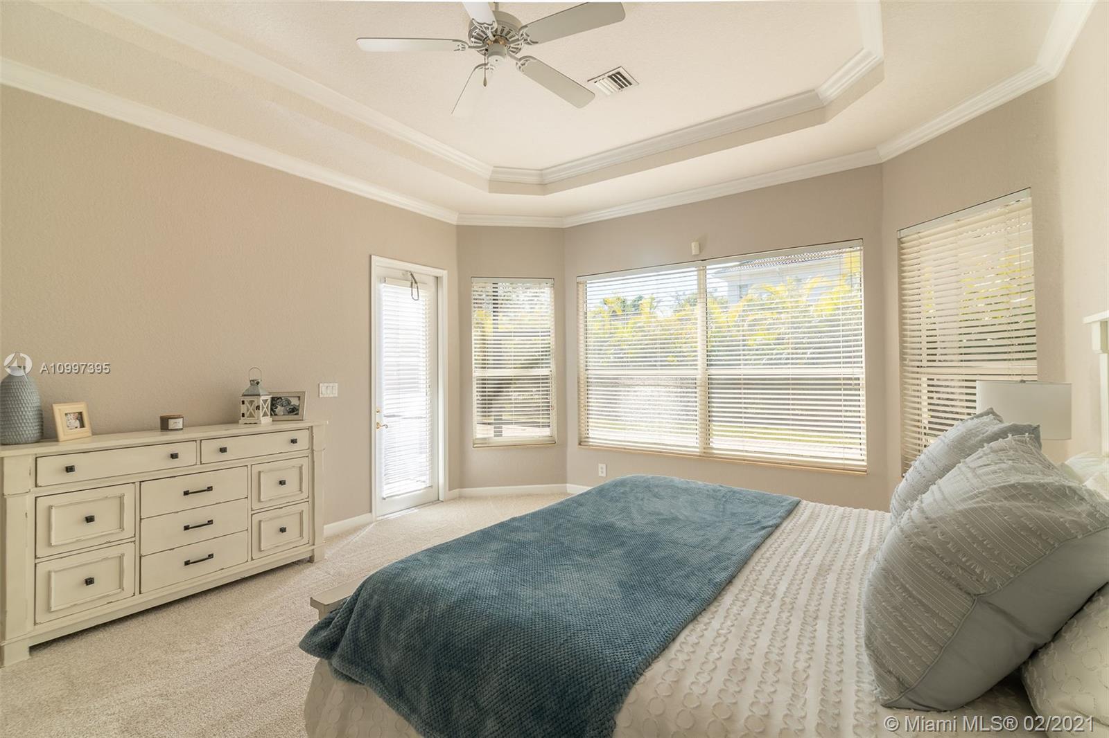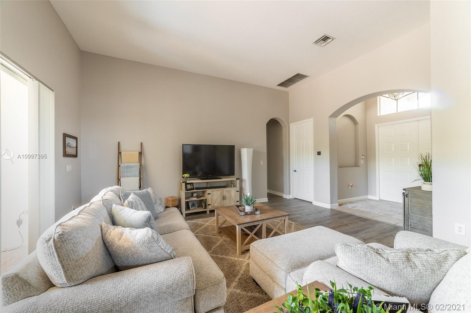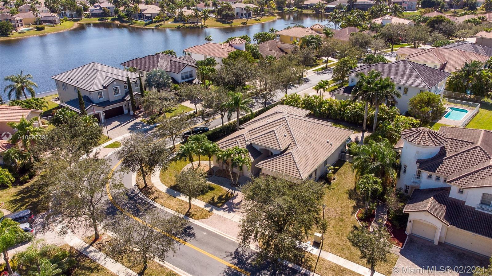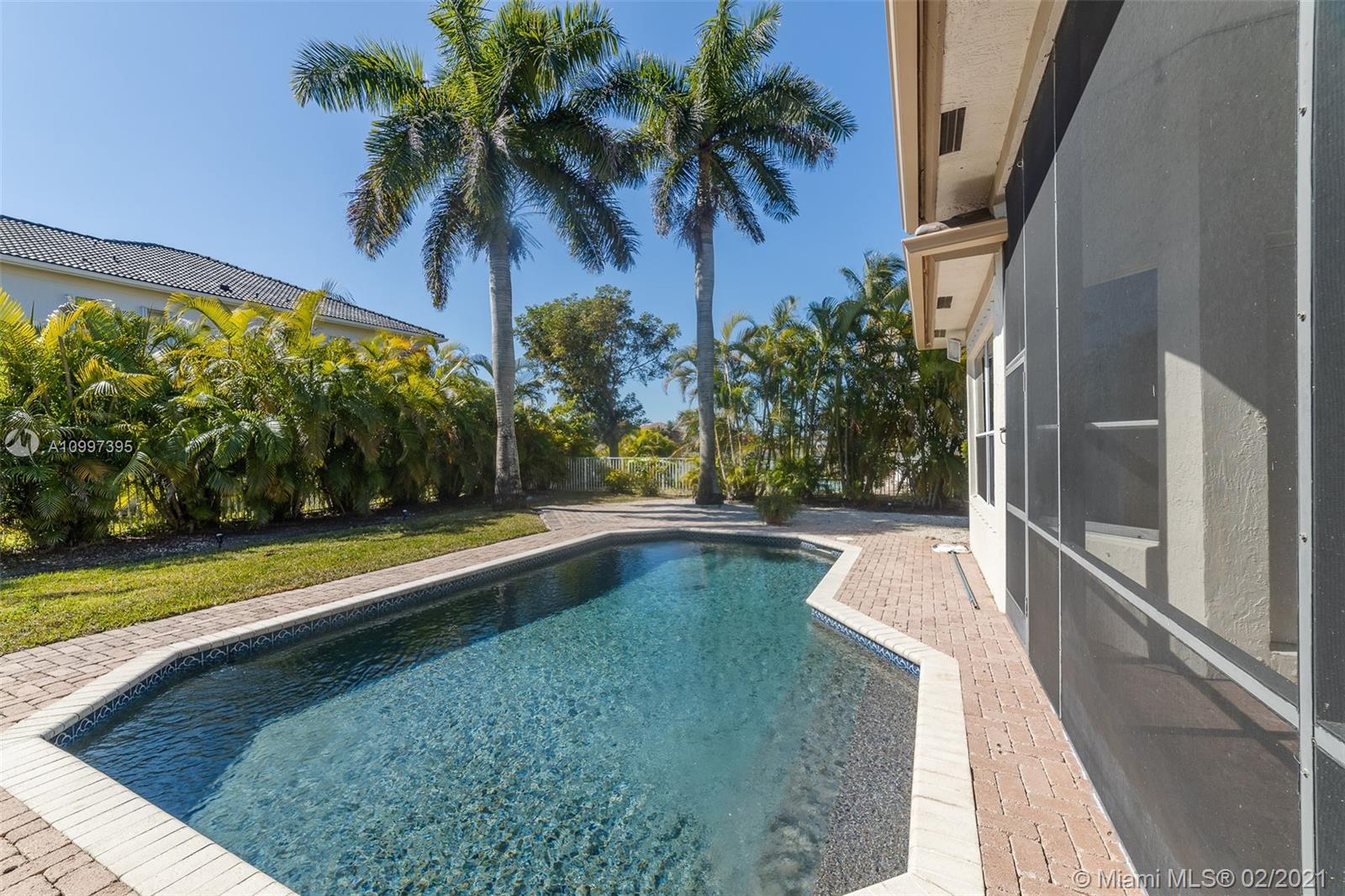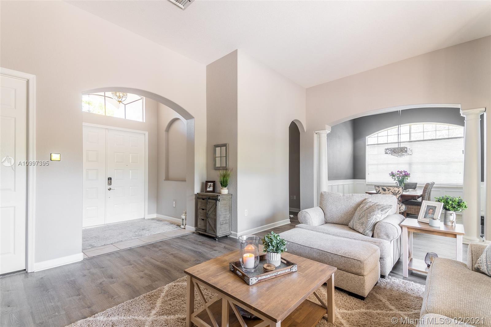 Stunning one-story residence located inside of the prestigious community of Sunset Lakes. Enjoy the privacy of living in a corner lot home that is situated on an oversized 11,889 sq. ft. lot. As you walk inside, you will be amazed by the 12' volume ceilings in all living areas of the property, and the privacy of having a split bedroom floor-plan that separates the master bedroom from the rest of the bedrooms in the home. New roof installed June 2020, freshly painted in August 2020, New carpet and new vinyl flooring in living area, hallway, and dining room., the pool has a heating and cooling system. Water filtration system, open family room with access to the outdoor screened-in terrace, 1/2 bathroom that serves as a cabana bath with direct access to the patio/pool area.