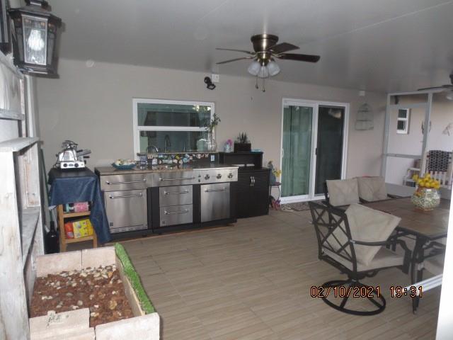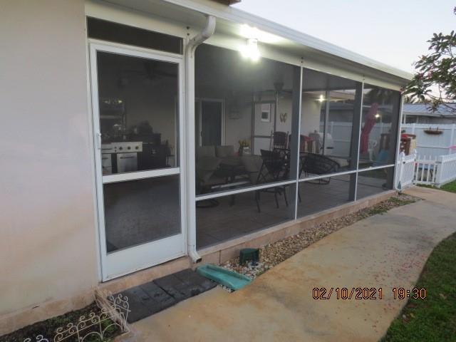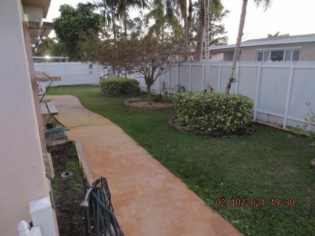 Well maintained three bedroom two bathroom one car garage. Split floor plan. Tile floors throughout and laminate in bedrooms. Large fenced yard with screen patio and complete outdoor kitchen. Yard also features children's play area! Stamped concrete circular driveway. Nicely landscaped with exterior lighting. Interior features include updated kitchen and bathrooms. Living room/Dining room combo. Eat in Kitchen and family roof off kitchen. Hurricane impact windows & doors. Newer AC and appliances. All upgrades done with permits. Must see to appreciate.