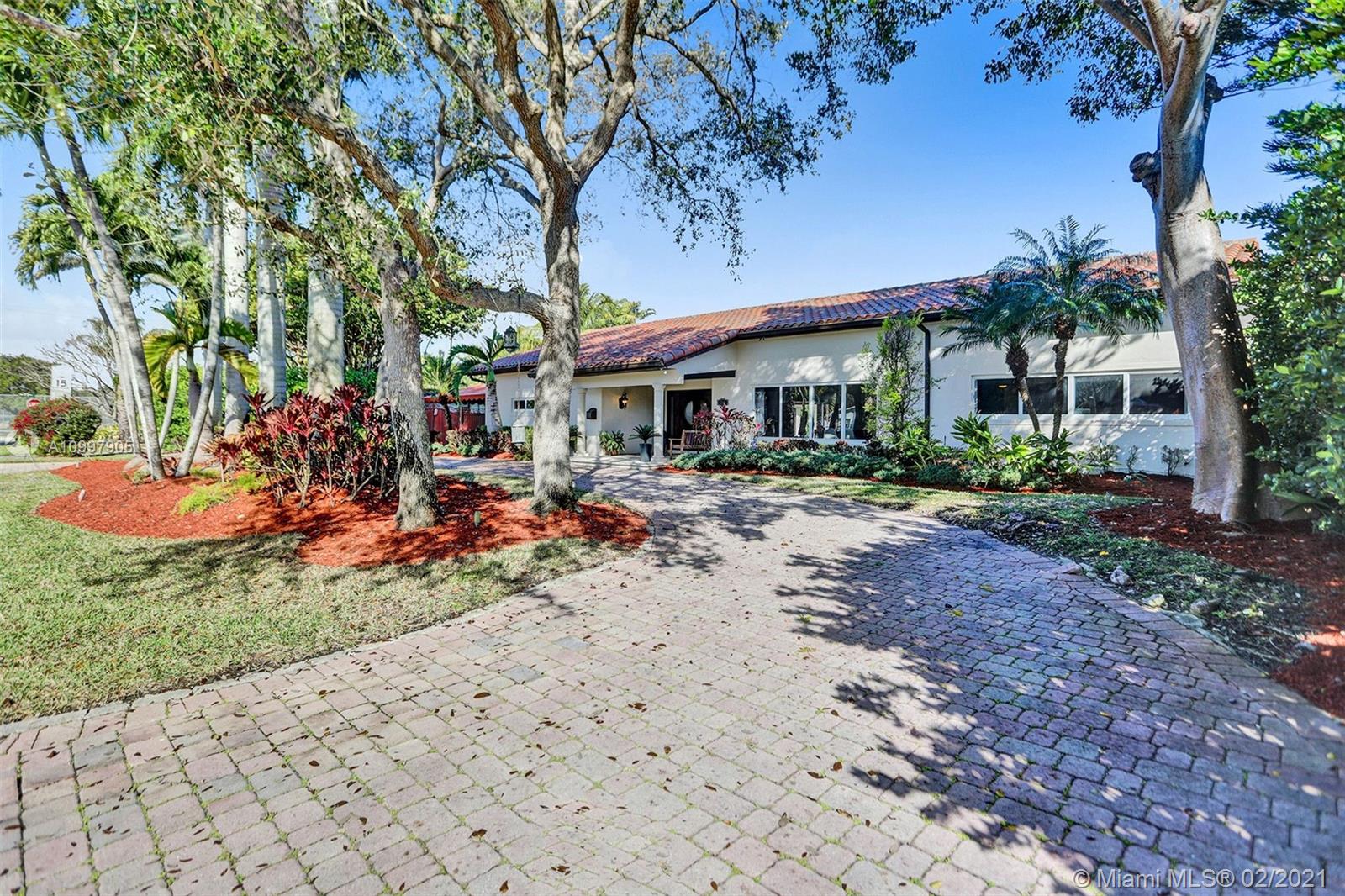 This spacious (over 4,000 sq foot) Pinecrest home is a breath of fresh air & an upgrade from the ordinary. It is a bright & luxurious one-story, 4 bedroom 3 bath beauty, with French doors that wrap around the tropical heated pool/spa & patio, allowing for marvelous views from all angles. Polished marble floors in social areas, hardwood floors in bedrooms & an enormous family room with soaring wood beamed ceilings plus a fireplace that also opens into the Master suite. Recently revived kitchen has a breakfast nook + espresso bar. California closest in bedrooms, newly installed impact windows in front, and full wind protection all around. Electric gated side entry, one car carport + 1 car air-conditioned garage (gym). This dream house is built with space, privacy & entertaining! SEE VIDEO!