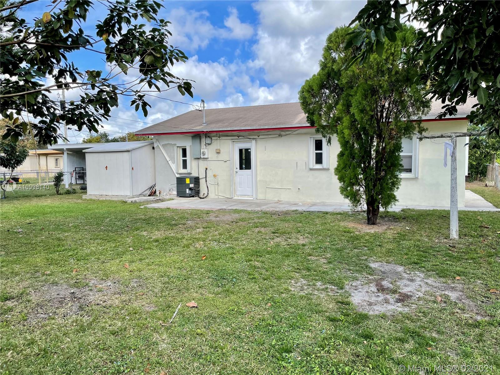 Opportunity awaits! Great home located in quiet cup de sac street with ample backyard with room for a pool and to expand existing home. Currently 2 bedroom 1 bath. Home has newer windows with accordion shutters throughout, new AC, Newer roof. Fully fenced in with mango and avocado trees in the backyard. Easy access to highways. No HOA fees.