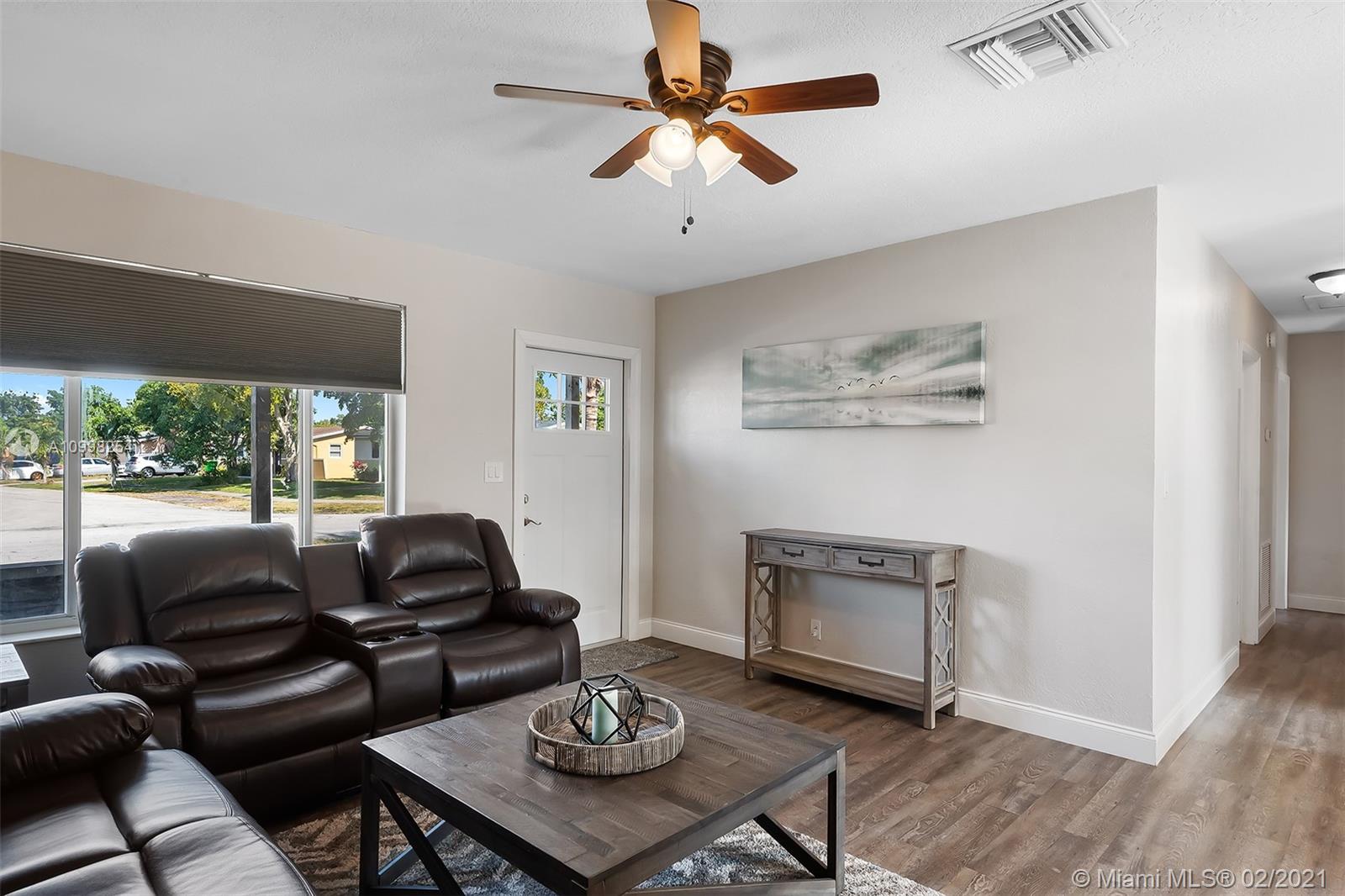 Step into this newly remodeled home in the heart of Sunrise. Brand new laminate flooring throughout. New AC and air ducts (2019) permitted and passed. All new kitchen appliances. The bathrooms are completely remodeled. All rooms come with ceiling fans and window blinds. French doors lead out to a massive backyard with a covered gazebo and a large storage shed. The front of the house features a two-car driveway and a covered carport. This is the only house on the market in the neighborhood. Come and see it before it's gone.