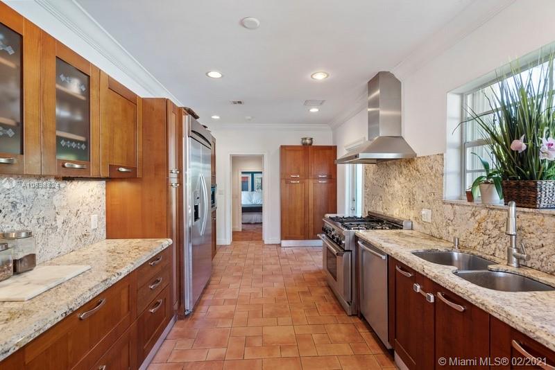 Amazing opportunity to live on prestigious La Gorce Golf Course. Gorgeous views and walking distance to Country Club. This three bedroom, three bathroom home has an open floor plan with abundant natural light. Large galley kitchen with wood custom cabinetry, granite countertops and Thermador commercial oven, stainless steel appliances and snack counter. Charming spaces with wonderful views enjoyed from almost every room. Patio area with trellis perfect for entertaining. Great neighborhood close to shops, restaurants, beaches, hospital, parks and A+ schools.