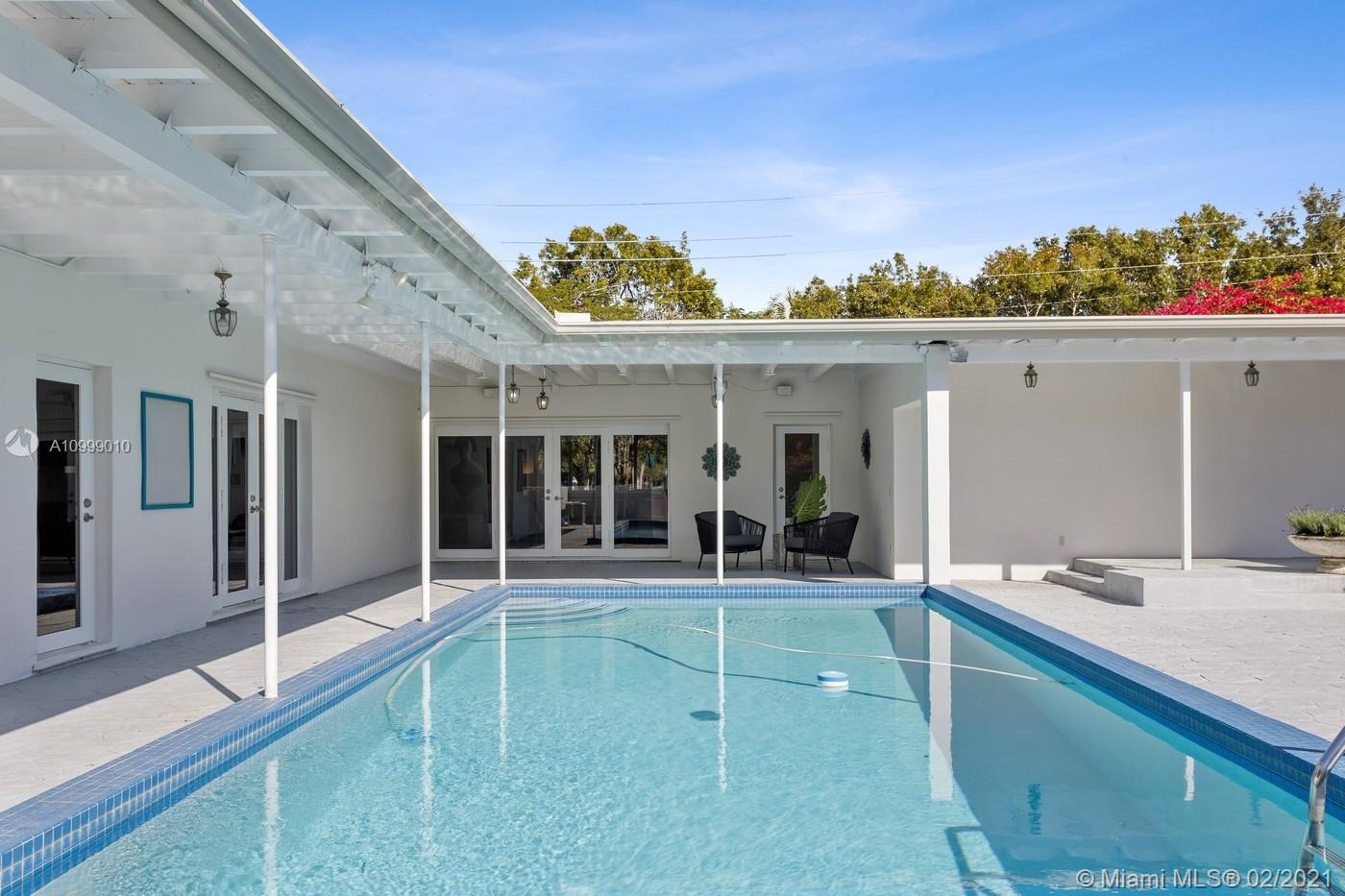 Beautifully Positioned on over 38000 sq.ft. of land, this throwback MIMO Style home will captivate your imagination. A Double door entry leads to a private courtyard embraced by a Cozy Casita and an “L” shaped Main House, each are focused on the pool patio with views from most rooms. An open-air exterior breezeway connects the two structures while providing ample opportunity for true indoor/outdoor living. You will find this “Courtyard Home” warm, inviting & sumptuously private. The main house with a split bedroom plan, has 2 bedrooms 2 baths and an eat-in Kitchen. The Casita is complete with a living room, a separate bedroom and a full bathroom. There is a 2 car side-entry garage, impact windows & doors & a whole house generator. Architects, Developers and creatives will love this home!
