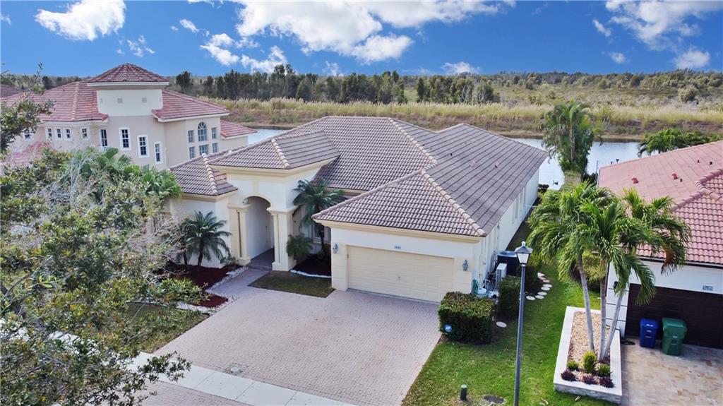 Enjoy privacy & breathtaking sunset views from this waterfront home bordering a peaceful preserve. This gated community home boasts an abundance of natural light, vaulted ceilings, a pool, and five walk-in closets! This 5/3 split floor plan Ruben model was converted to a 4/3 to create two huge master suites, perfect for multi-generational living, or it can be easily converted back to a 5/3. New flooring installed in all bedrooms 2019. New A/C system, & mini split A/C for the garage, installed 2015. Home comes with Accordion Shutters & whole house generator (requires servicing). Low HOA ($219/mo) includes cable, resort style pool, gym, clubhouse, tennis courts, basketball courts, volleyball courts, playground, & ADT Security. Furniture negotiable. Top Rated Schools!