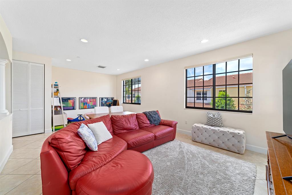 Welcome to the largest corner 4 bedroom townhouse in the highly sought after gated community of Centra. Enter at the first floor which is complete with a large bedroom, full bath and two car garage. The second floor is the living area and boasts tons of natural light with several windows and a balcony. There is a living area, dining room, powder room and a kitchen with stainless steel appliances, granite counters and freshly painted cabinets. Additional bedrooms and the master suite are located on the top floor. The master suite has a walk-in closet, a spacious bathroom with granite counters and Jacuzzi tub and frameless shower. Two additional bedrooms, a full bath and the laundry area are on the top floor. This townhouse has been impeccably cared for and is move-in ready.
