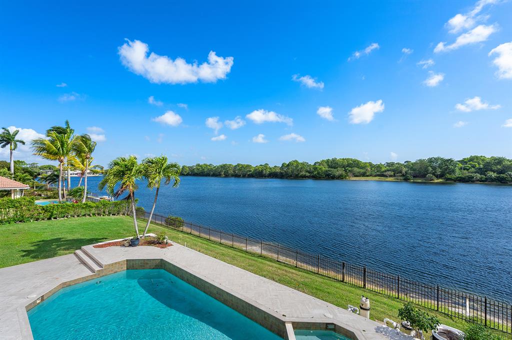 Rare double lot estate located directly on one of the largest natural lakes in Boca Raton, with 200ft of frontage providing magnificent water views from almost every room. Custom-built estate home in prestigious gate-manned community in East Boca was completely renovated in 2008 including a new roof, Chef's kitchen top-of-the-line appliances, marble floors, cathedral ceilings, and a dramatic staircase leading to the two second floor en-suite bedrooms. Expansive open living areas make the home perfect home for entertaining. Ground floor Master bedroom with sitting room, huge master bath with oversized soaking tub, separate his/her vanities, 50 sq ft shower, private steam room, and his/her walk-in closets. There is a 70K whole house generator at the property and two 1000lb propane tanks.