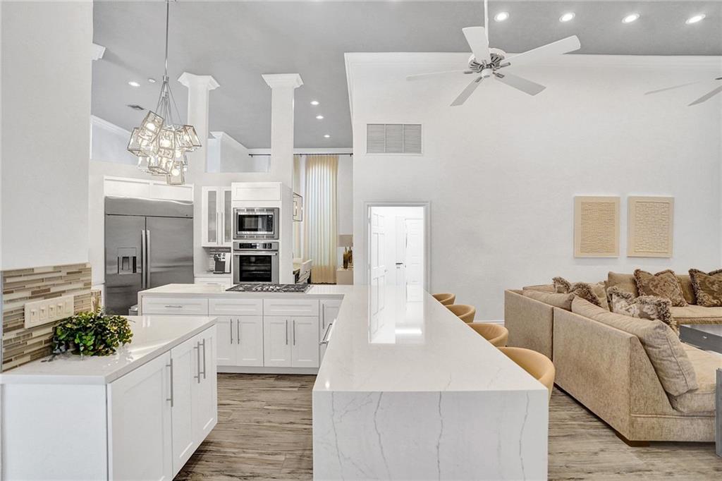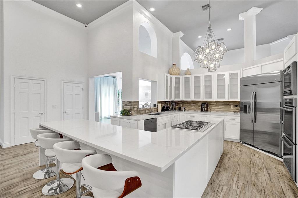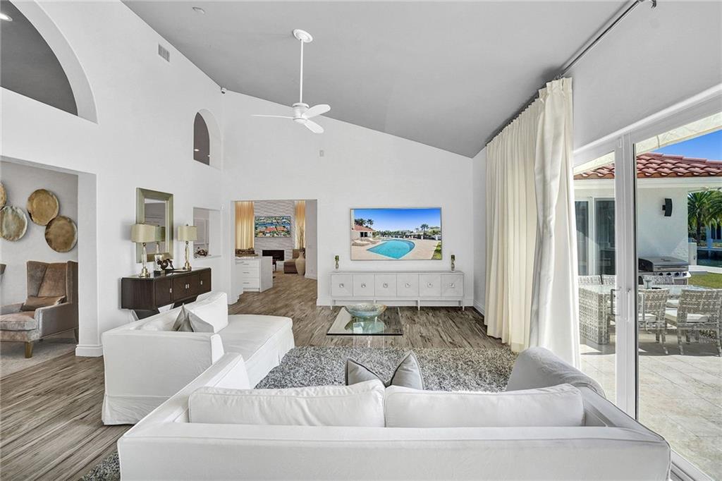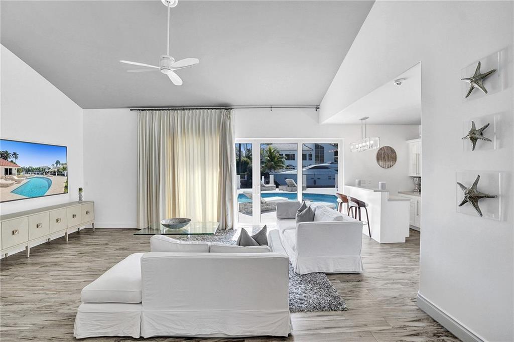 Prestigious Seven Isles Las Olas home loaded with luxury upgrades. Exceedingly rare ranch with 14+ ft ceilings and triple split bedrooms. Flowing natural light, from large custom impact glass, shows off the open floorplan with a modern flare. Huge custom chef's kitchen is the center point in an entertainer's delightful design. Model-like feel as you enter in the large double doors and see the inviting pool deck and waterfront beyond. The bar just inside the large, bright rear doors serves inside and out we ease. The oversized pool deck transitions seamlessly into the brand new full-length concrete dock. The large lot leaves lots of room for expansion of the home/patio to suit personal tastes. A full size 3-car garage adds a rear rollup door to service the boaters needs. Selling turnkey!