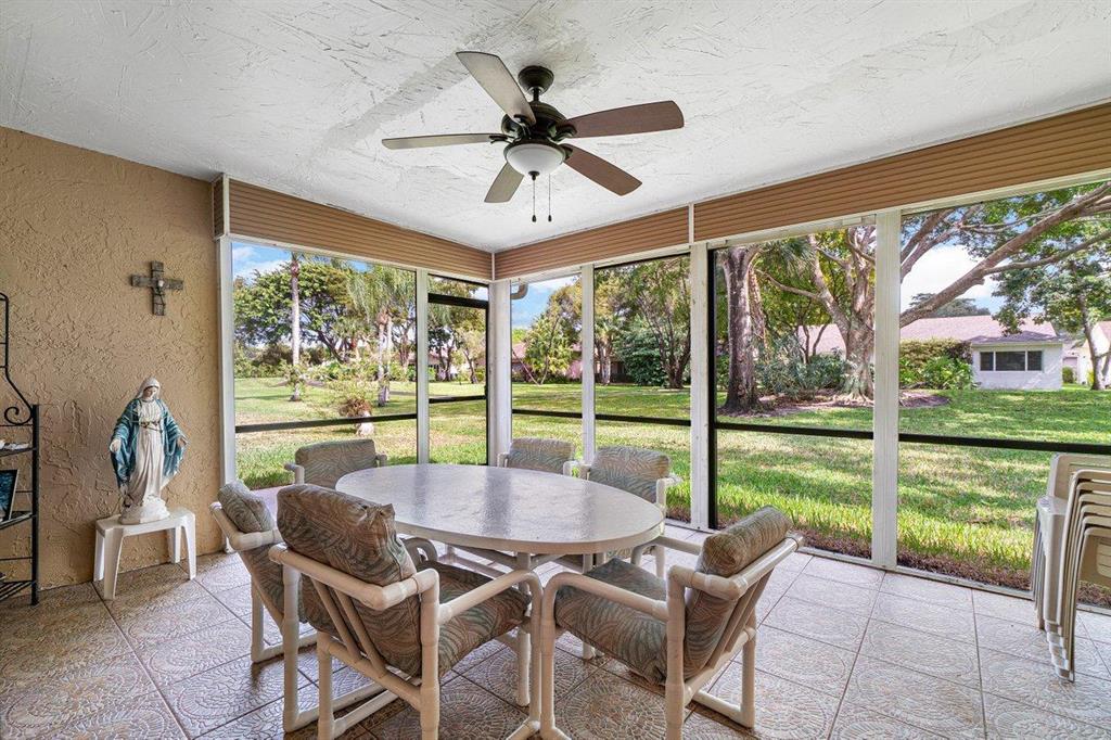 Brand new main roof, flat roof and skylights! Just installed. 55+ Single family home on a park view lot! 2 car garage. Greenbriar is a well maintained. low maintenance fee community with tennis courts and clubhouse (with pool) located in Boca Chase. Ceramic tile throughout. Large screened and tiled patio with a beautiful view. Eastern exposure in back for those shady afternoons. Updates include newer: Water Heater, Refrigerator, Cook Top Range/Oven, 4 ton A/C in 2014, Alarm system! Motion/light censored detectors in front & back of house! Whole interior of home freshly painted! Do not miss out on this one!