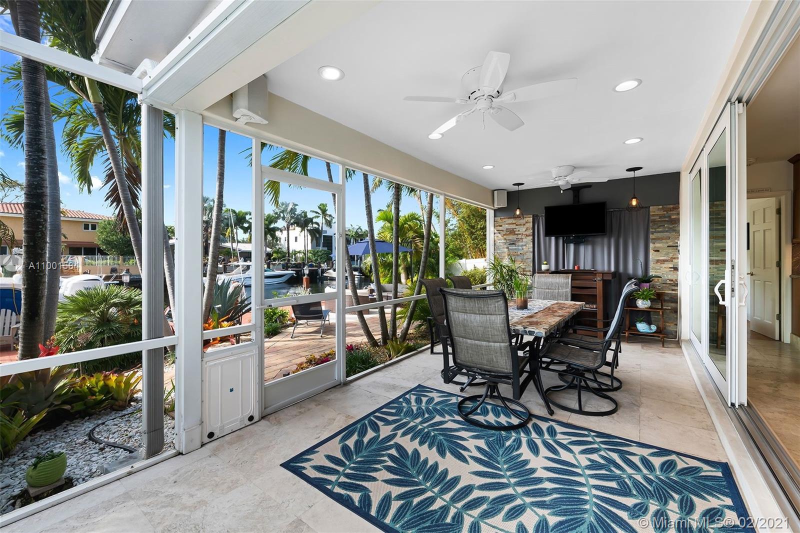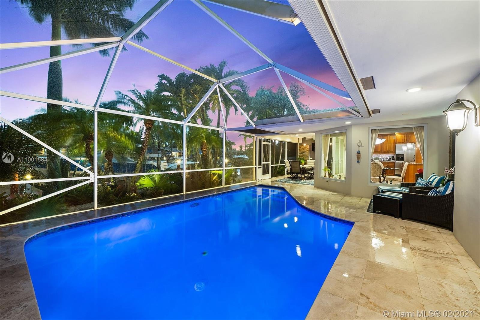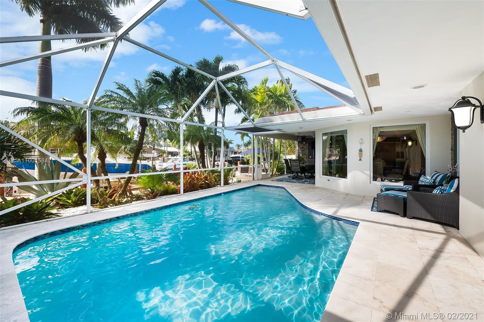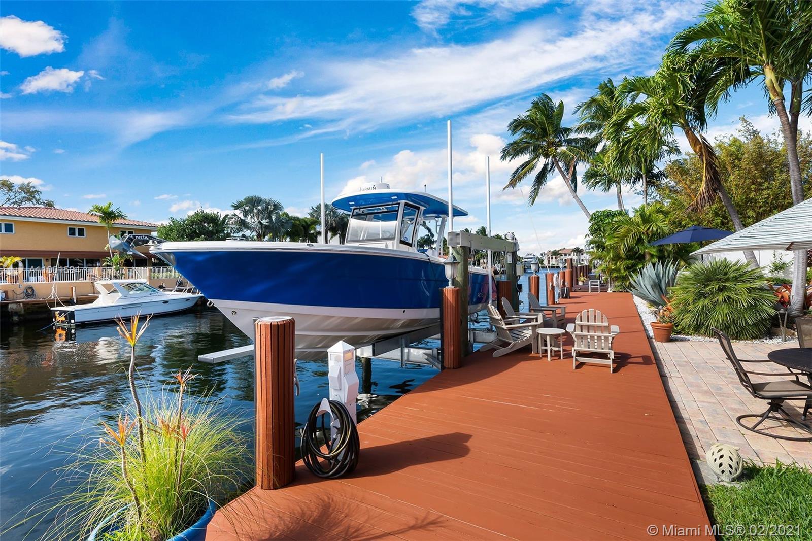 Gorgeous and remodeled waterfront home in Gated, upscale, Bermuda Riviera. 80 Feet of waterfront on a wide navigable canal with a new 20,000 lb boat lift and deep dock. Only 4 homes to the Intracoastal. 3 Bedrooms and 2 baths plus Office/Den. Spacious open floor plan with entertainers kitchen and Indoor/outdoor space. Granite countertops, custom cabinetry, and oversized cooking island. Light and bright with Impact windows and doors. New roof 2015. New A/C. New Impact Garage door. Beautiful screened in pool. Walking distance to shopping, restaurants, and Fort Lauderdale Beach. This home can be sold turnkey/furnished and won't last long!