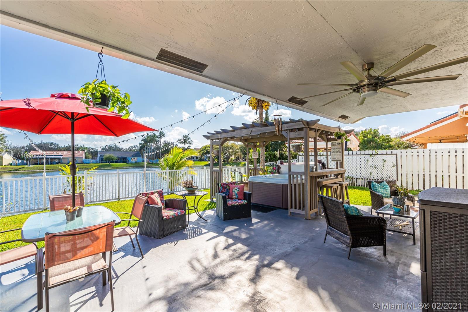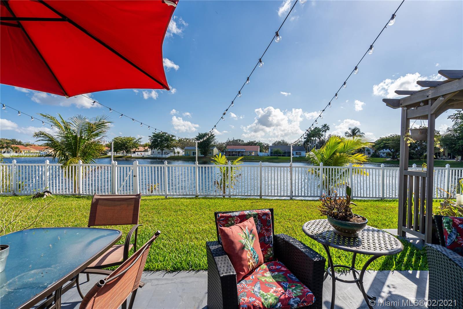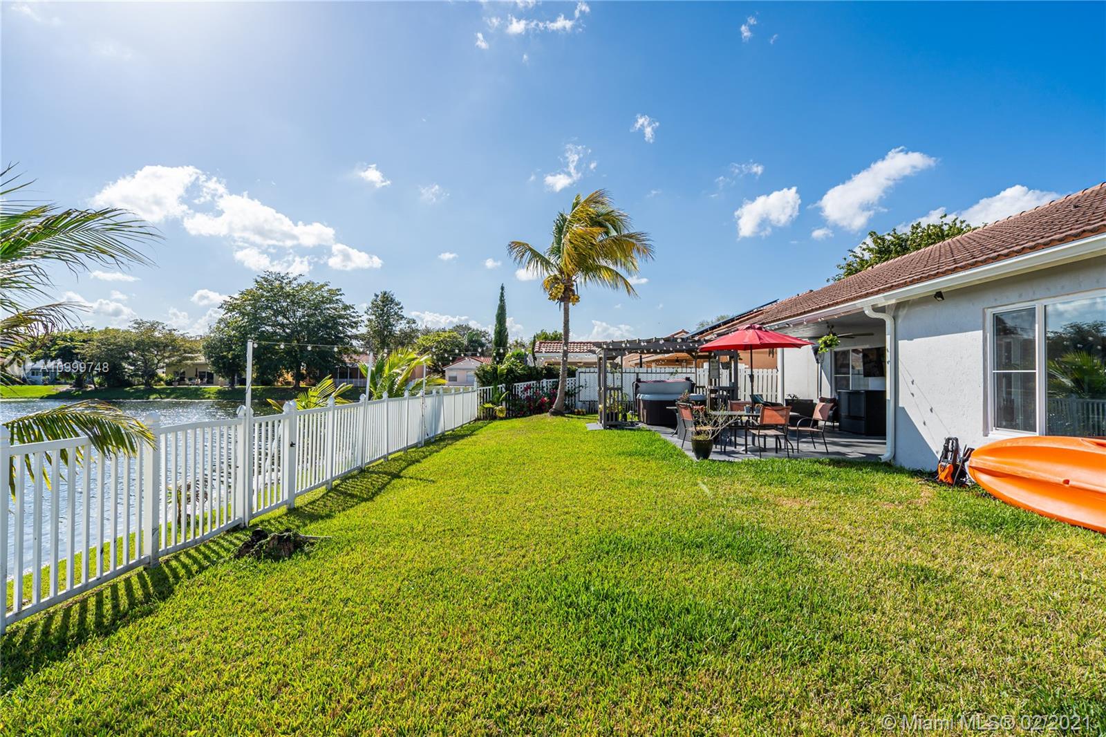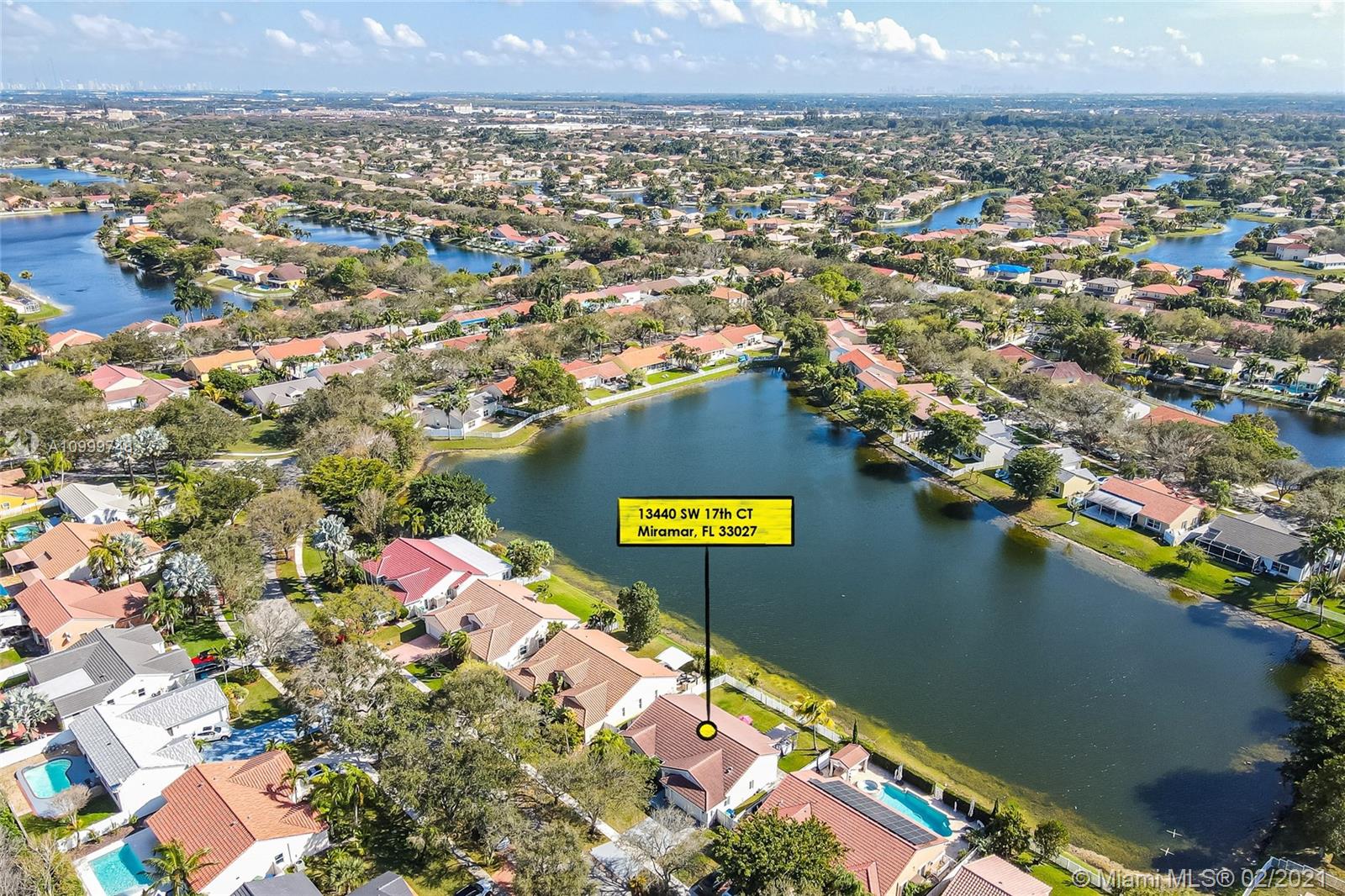 A MUST SEE!!! Stunning waterfront home in the quiet and highly desirable Trilogy neighborhood in Miramar. This beautifully renovated home greets you with 14 feet high vaulted ceilings that gives it an open and bright ambiance. Wonderful split floor plan that features 3 beds and 2 baths. Bathrooms have top of the line fixtures, updated wood kitchen cabinets, granite countertops with stainless steel appliances. The large fenced in backyard features palm trees and a spectacular view of the serene lake. A/C less than a year old, new roof installed in 2015. LOW HOA fees!!!