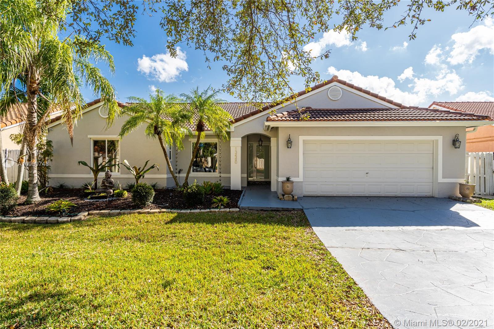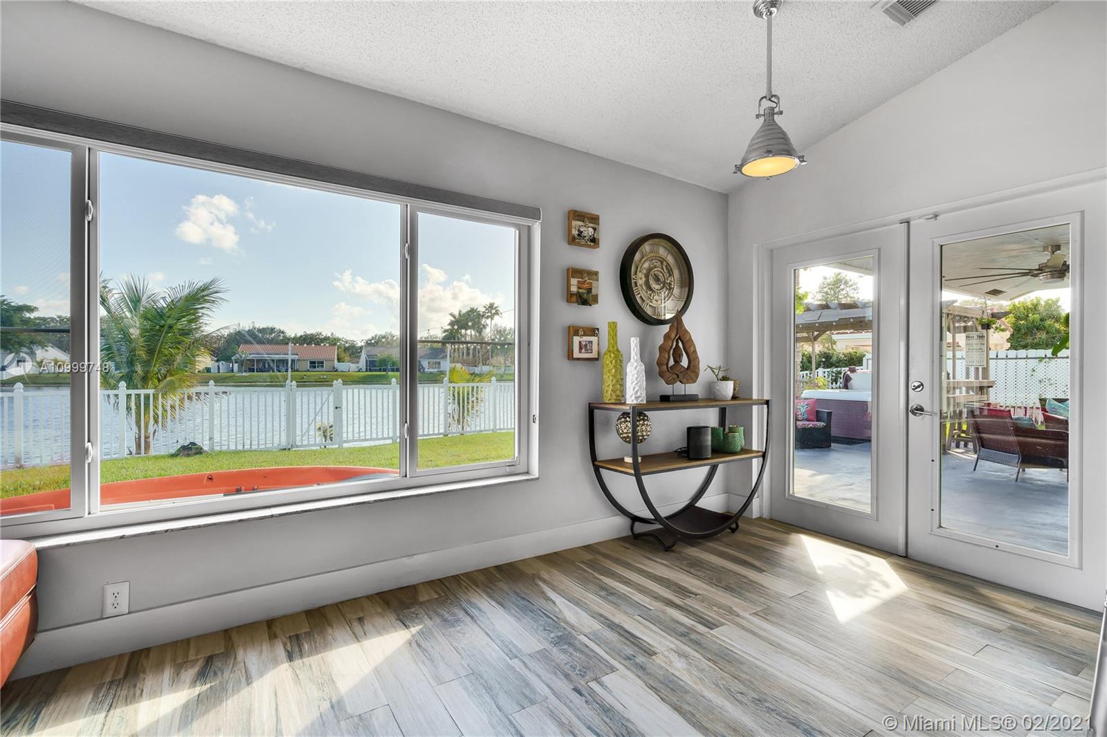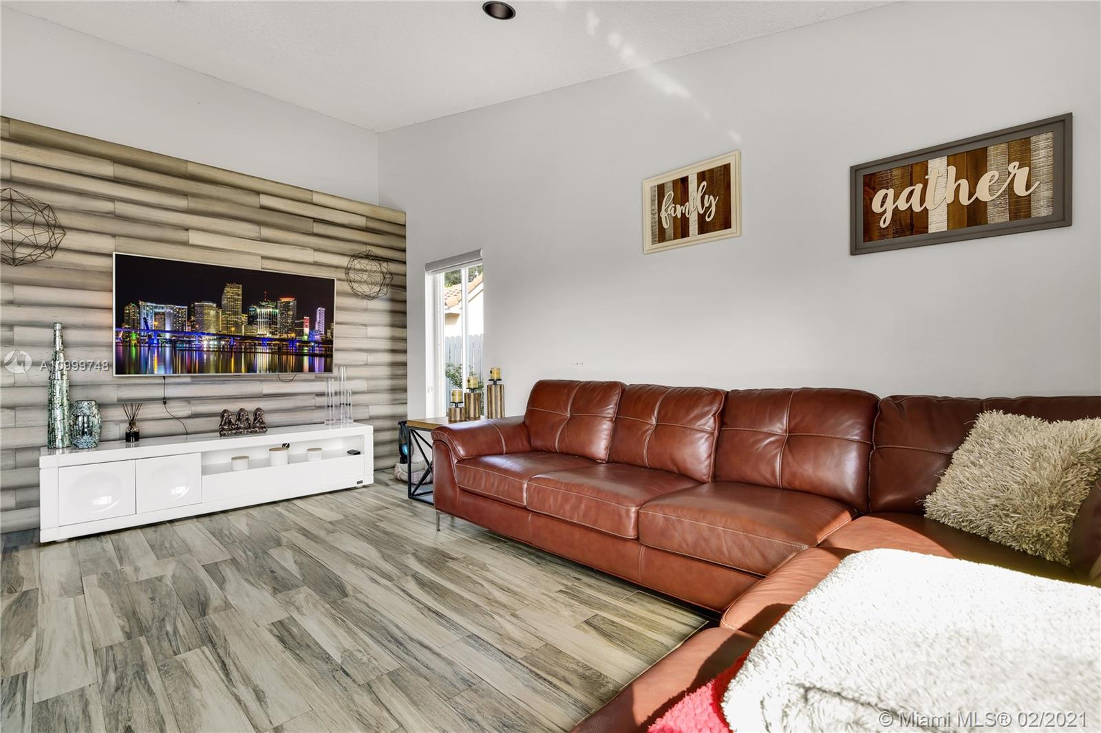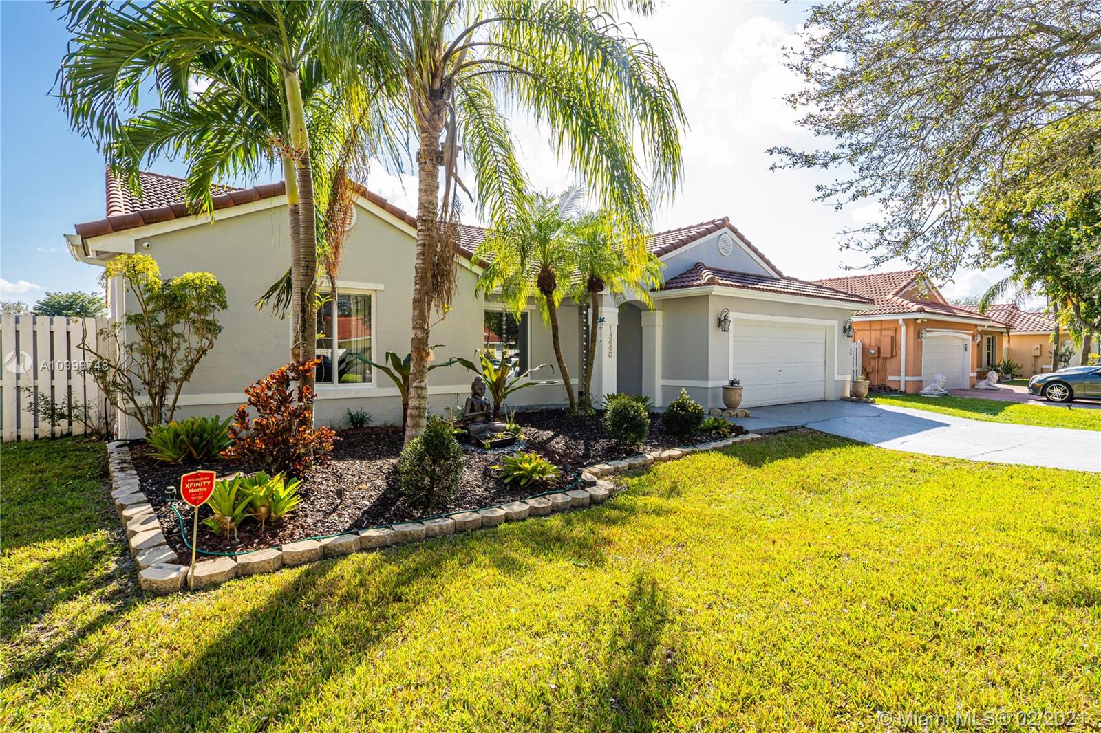 A MUST SEE!!! Stunning waterfront home in the quiet and highly desirable Trilogy neighborhood in Miramar. This beautifully renovated home greets you with 14 feet high vaulted ceilings that gives it an open and bright ambiance. Wonderful split floor plan that features 3 beds and 2 baths. Bathrooms have top of the line fixtures, updated wood kitchen cabinets, granite countertops with stainless steel appliances. The large fenced in backyard features palm trees and a spectacular view of the serene lake. A/C less than a year old, new roof installed in 2015. LOW HOA fees!!!