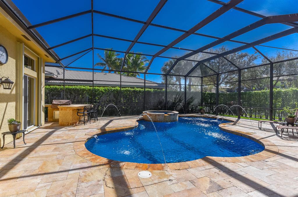 MUST SEE BEAUTIFULLY MAINTAINED MEDITERRANEAN STYLE 5 BEDROOM HOME ON PRIVATE CORNER LOT. STUNNING CUSTOM RESORT POOL WITH DECK JETS, HEATED SPA/POOL, SOLAR HEATER EXTENDING POOL SEASON + SCREEN ENCLOSURE ADDING OVER 1,600 SQ FT FOR OUTDOOR ENTERTAINING. POOL AREA INCLUDES BUILT IN BBQ/MINI FRIDGE & GORGEOUS TRAVERTINE DECKING. CUL DE SAC STREET WITH NO THROUGH TRAFFIC GREAT FOR KIDS TO PLAY & WALK OR BIKE TO SCHOOL (K THRU 8TH GRADE) ACROSS COMMUNITY ENTRANCE. GOURMET CHEF'S KITCHEN W/ GRANITE & STAINLESS STEEL APPLIANCES (BUILT-IN SUB ZERO FRIG). 42'' SOLID WOOD CABINETS & CENTER ISLAND OVERLOOKING FAMILY ROOM AND POOL. OPEN ROOM CONCEPT. CROWN MOULDINGS AND COFFERED CEILINGS IN FORMAL LIVING ROOM AND MASTER BEDROOM. NATURAL BAMBOO WOOD FLOORS IN ALL BEDROOMS. SEE MORE.....