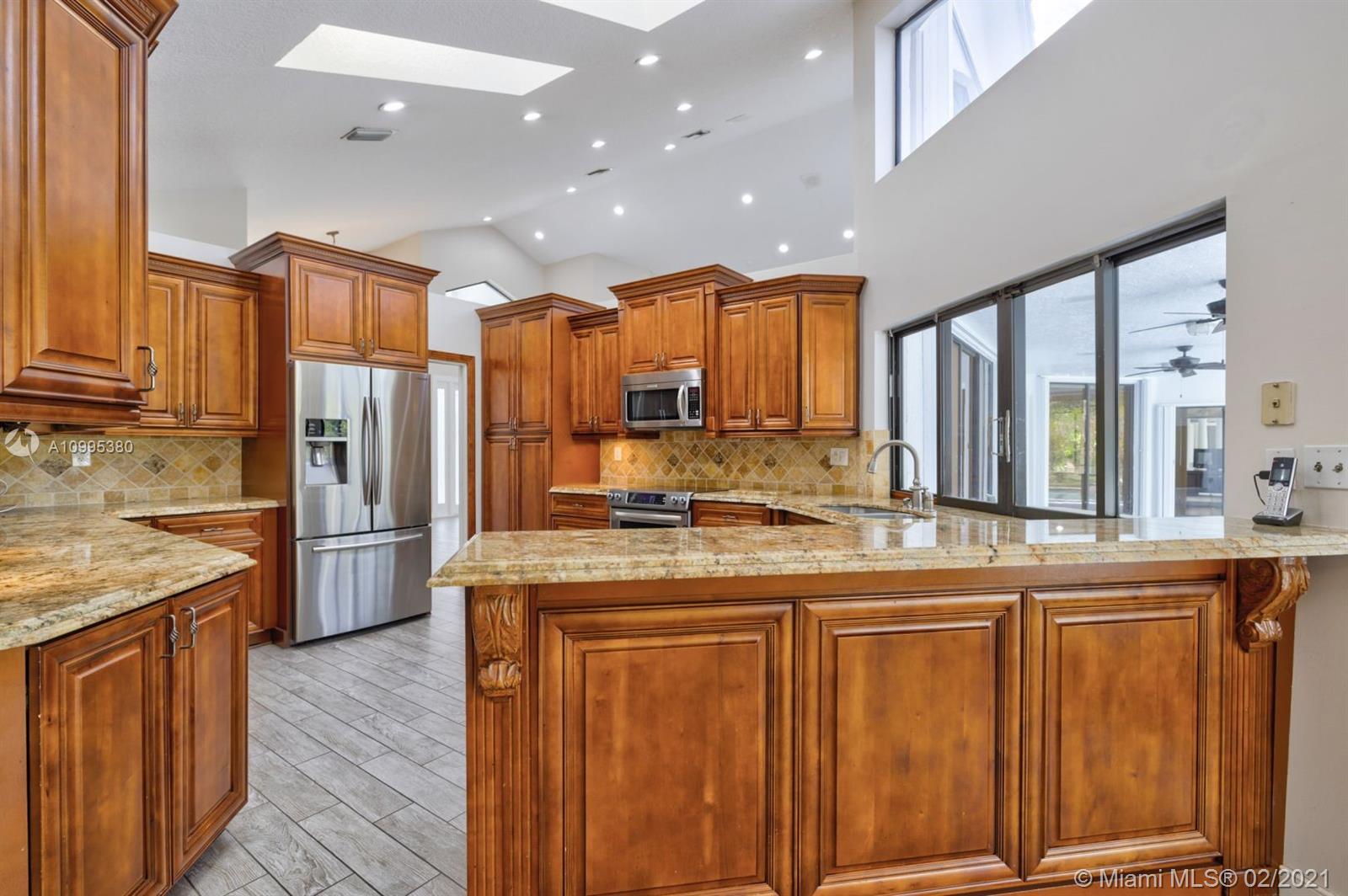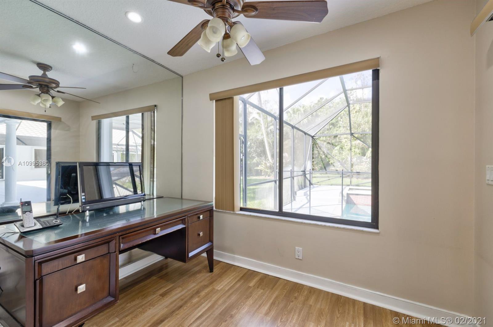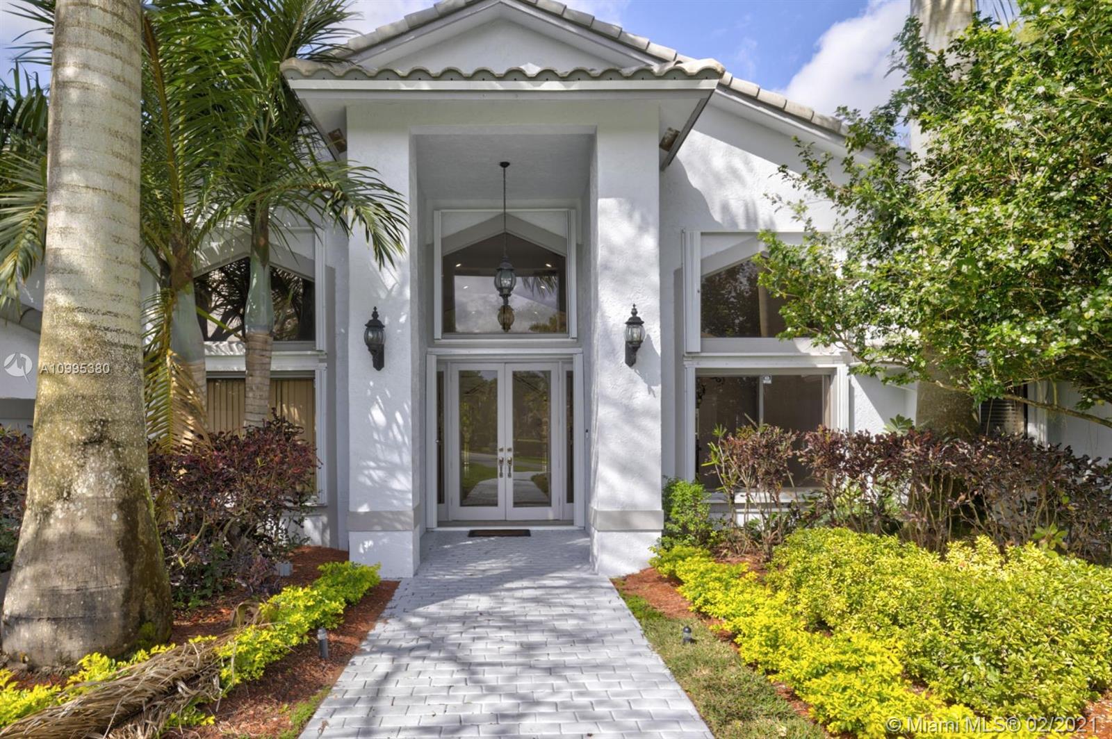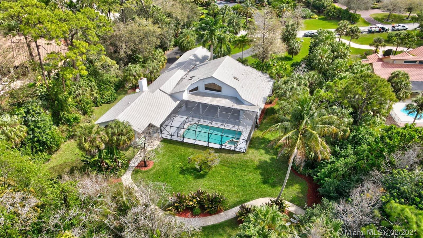 Bright open pool home (ACRE+) in the quiet & highly sought-after guard gated community of Whispering Woods. The lushly landscaped paradise backyard backs up to a beautiful nature preserve w/ walking path & gazebo. Plank tile flooring, volume ceilings, updated kitchen w/ solid wood cabinets, granite counters & SS appliances. Great family layout, split bedrooms & an oversized family room, w/ wet bar & fireplace overlooking tropically landscaped yard. Master bedroom w/ extra sitting room overlooks backyard. Great for office or nursery. 2015 ROOF! Large Circular Driveway. Screened-In Pool & Spa w/ Baby Guard Fencing & Whole Home Hurricane Shutters. A Rated Coral Park Elementary! Property abuts Parkland, w/ Sawgrass Expwy. Access, just minutes to Boca.