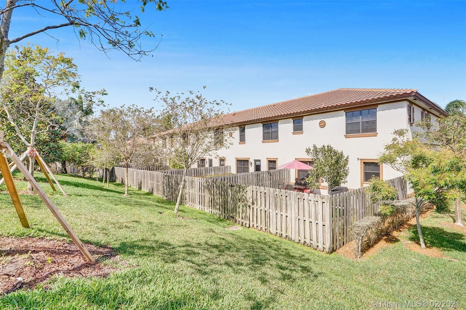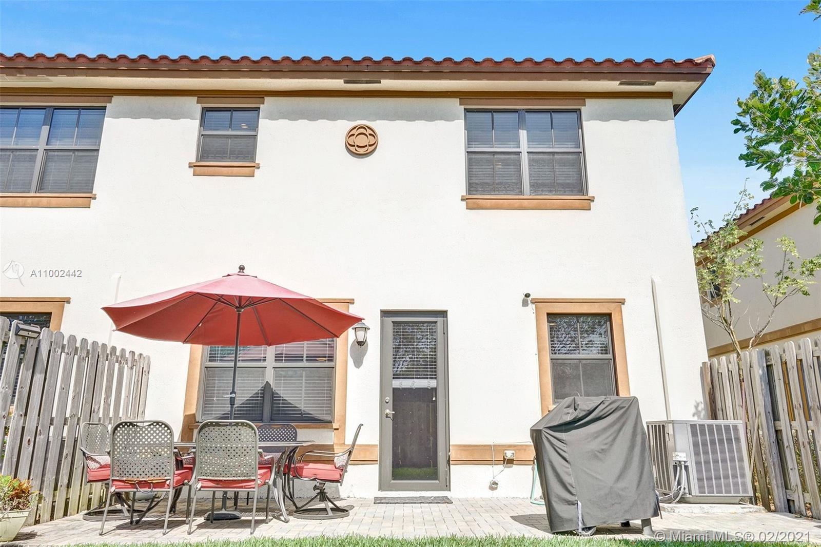 This beautiful designed Townhome is located in the Town Parc community of Mira Lago. This gorgeous corner unit attracts natural light which gives you a bright and warmth feel. This home comes with newly remodel vinyl tile flooring both upstairs and downstairs. Updated and spacious kitchen for a new a family to enjoy. Full Impact Windows throughout the entire home and a comforting private backyard space which is fenced in for your own entertainment. Reasonable HOA that gives you access to the club amenities and easy access to main roadways and major highways.