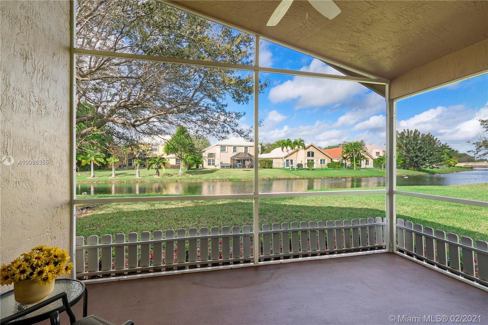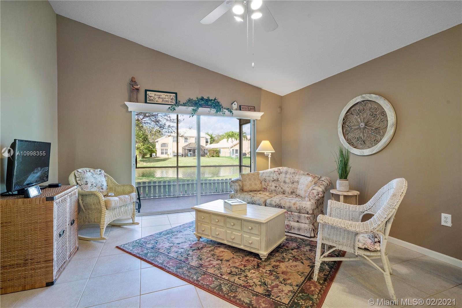 Come and see this light and bright, immaculate 3 bedroom 2 bath single-story home with open floor plan and soaring ceilings for contemporary Florida living! You will love the serene and peaceful waterfront views from inside your home and your screened patio to enjoy every day! Centrally located in desirable Coral Springs on the SW corner of Coral Ridge Dr. and Atlantic Blvd. with easy access to the Sawgrass Expressway, schools, parks, shopping and restaurants. Features include: house freshly painted in 2020, A/C 2015, hot water heater 2016, complete hurricane panels, neutral tile throughout living area, carpeting all bedrooms, vaulted and knockdown ceilings, recessed lighting, two car garage and so much more!