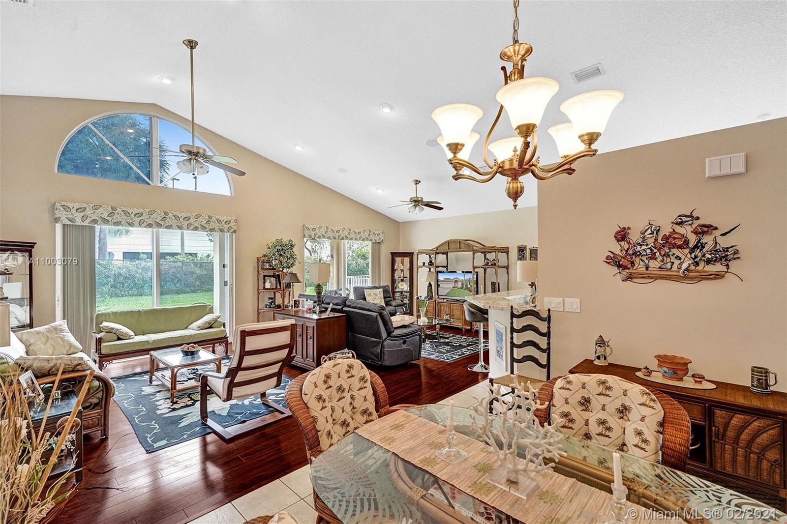 The Beautiful 3 Bedroom 2 Bath Home is Located in the Guard Gated Community of Pembroke Shores. This Home Features Tile & Wood Flooring Throughout. Upgraded White Kitchen Cabinets w/Granite Counters and a New Sink. Surround Sound throughout the Family Room. All Bathrooms have been Updated w/White Cabinetry and Quartz Counters. Newer A/C (3.5) years, New Water Heater. Covered Patio in the Back with Plenty of Room for a Pool.