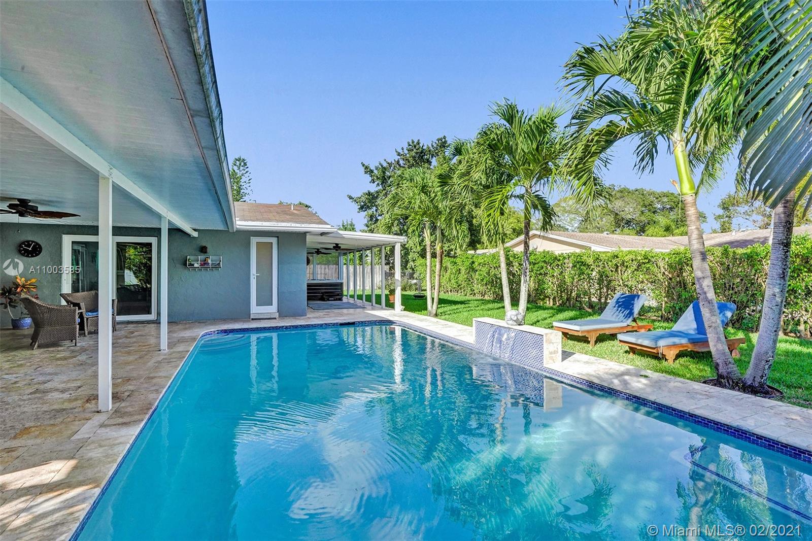Come fall in love with this stunning 3 Bedroom 2 bathroom plus a large bonus room that can be used as a 4th room or a 2nd entertaining area. This gorgeous pool home is nestled on an oversized ¼ acre private lot that is settled on a beautiful & peaceful cul-de-sac street. This home features a bright & spacious split-floorplan with an impressive open-concept kitchen perfectly completed with crown moldings, exotic stone countertops, and room for a dinette. The backyard feels like a tropical paradise with lovely palm trees, marble-stone deck, resort-style pool w/ waterfall, and a brand-new hot tub that will have you feeling like you’re in heaven! Newly completed renovations include Impact Windows & Doors, A/C, Patio Roof, Pool & pump Hot tub, Kitchen & Baths, bring your boat, RV, trucks No HOA