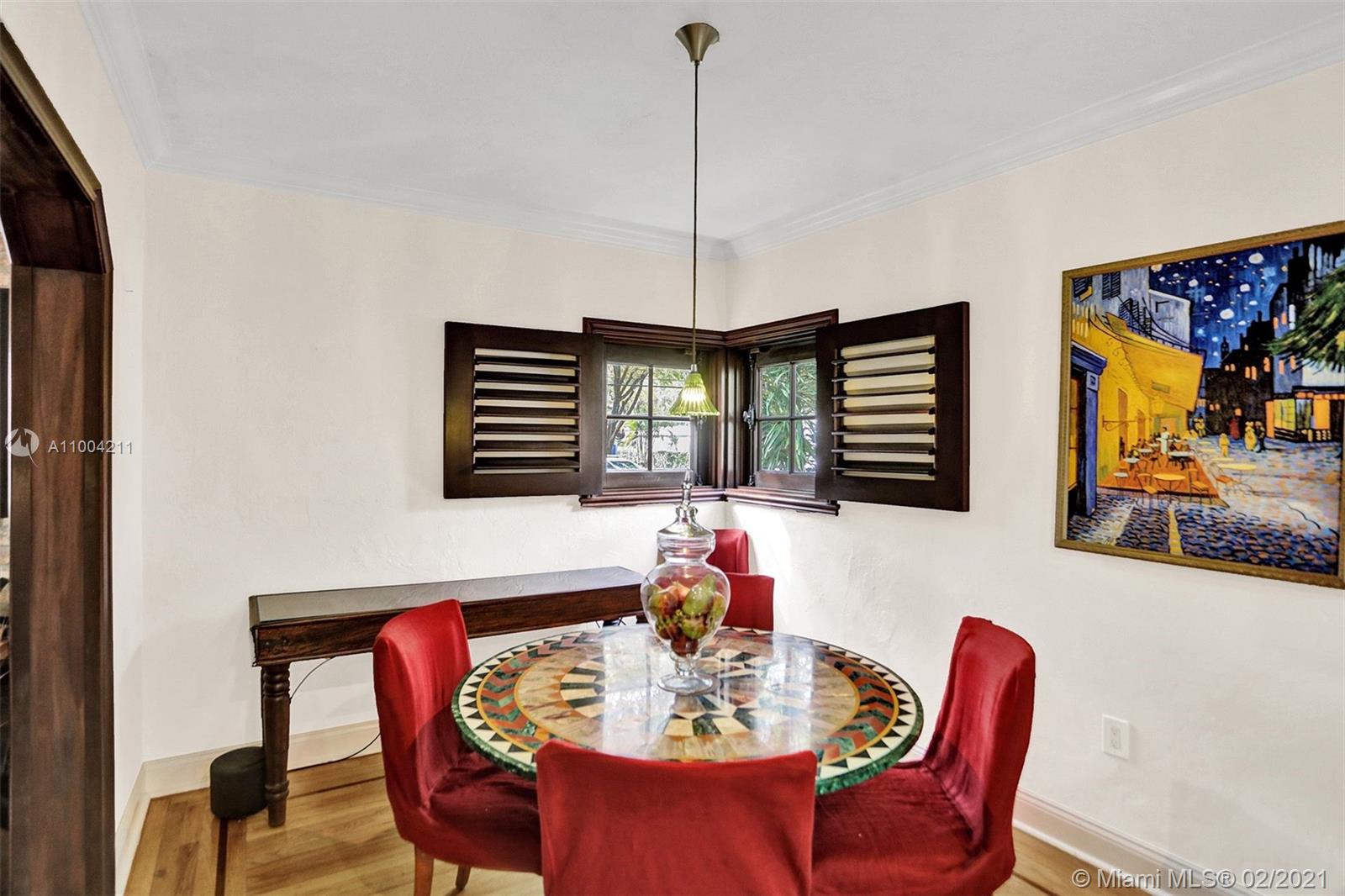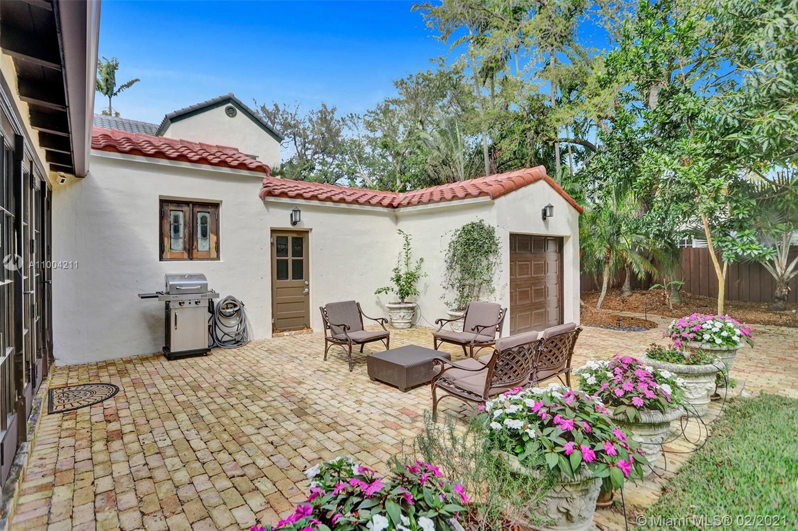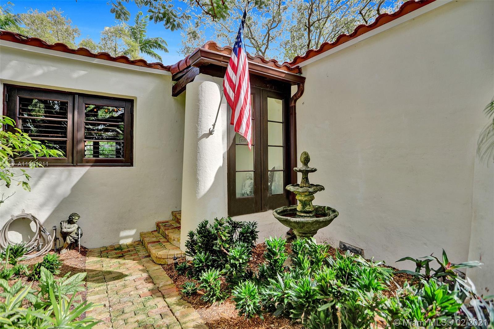 Charming 1940’s Spanish Mediterranean Shores home! Elegantly updated 2 bedroom, 2 bath with bonus 1.5 car garage under A/C and with marble floors that can be easily converted to a 3rd bedroom. Property is nestled on 9,600 sq. ft. lot offering lushly landscaped gardens and tree lined street, Chicago brick driveway & backyard patio that is fenced - great for entertaining. 2021 roof, 2021 paint and stucco, updated kitchen with stainless steel appliances and Carrara marble bathrooms. This property also features mahogany impact windows and doors with interior mahogany Bahama shutters, trim and moulding, beautiful oak floors throughout, majestic fireplace, natural gas generator and tankless gas water heater, irrigation system and built in level two electric car charger! Must See!