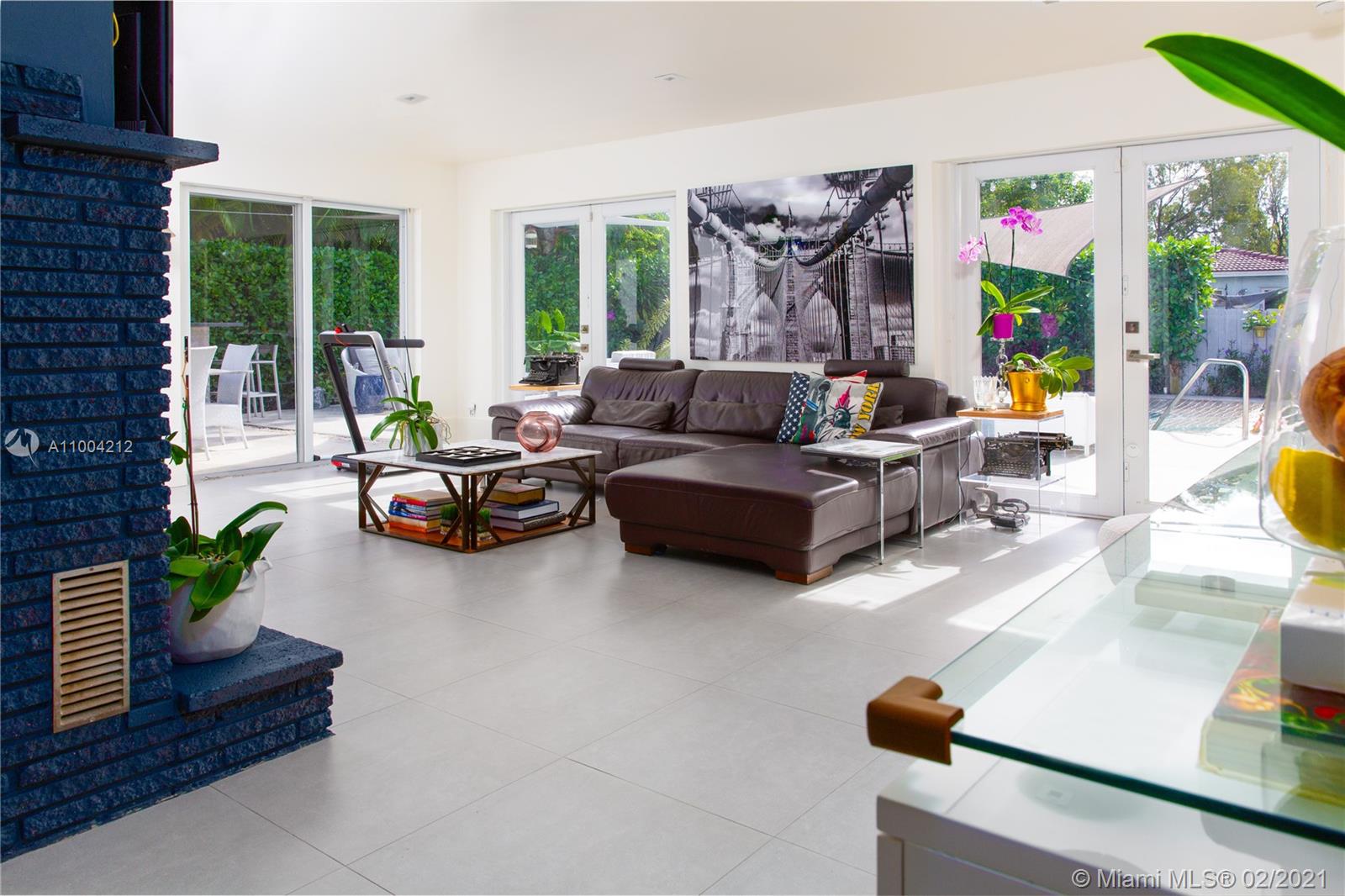 Beautifully renovated 3 Bedroom 2 Bath Miami Shores "Smart" home filled with plenty of natural light. A stunning fireplace in the family room brings character to this home leading to an inviting pool with outdoor kitchen and a wet bar surrounded by a lush garden. No expense was spared in this extraordinary home featuring an exceptional split floor plan with formal living and dining. Other amazing features are high impact windows and doors, porcelain floors, new electrical and plumbing, kitchen with quartz countertops and stainless steel appliances, including a subzero Wine Cellar for the Wine Enthusiasts. Security Cameras throughout, Ring Doorbell, smart light switches. One car Garage accessible through the private back alley. Enjoy the summer year round weather in this Paradisiac home.