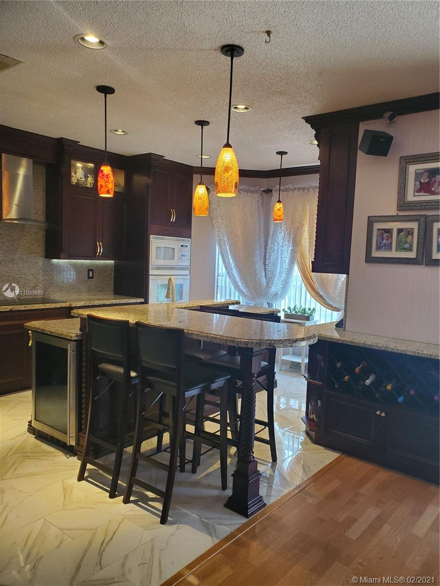 THIS STUNNING 2 STORY LOCATED AT HIGHLY DESIRED OAKRIDGE GATED COMMUNITY ON CORNER LOT FEATURING UPGRADED KITCHEN WITH GORGEOUS MAHOGANY CABINETS/GRANITE COUNTERTOP/ISLAND, WALL MOUNTED HOOD/DRY BAR W/ EXCEEDINGLY LG/ FAMILY RM, FORMAL LIVING/DINING RM, CATHEDRAL CEILINGS. WOODEN STAIRCASE WITH EXTRA STORAGE UNDERNEATH, AMAZING MASTER BDRM W/ SITTING RM, WALK-IN CLOSET, ROMAN TUB,SEPARATE SHOWER. NEW A/C UNIT. HUGE BACKYARD, LUSH LANDSCAPING, W/ NEW AWNING IN YARD W/ FOUNTAIN . "ROOM FOR POOL". MULTI-USE GARAGE W/ CABINETRY, FRIDGE & SMALL ROOM, HURRICANE ACCORDION SHUTTERS... GREAT LOCATION,CLOSE TO HARD ROCK CASINO/GUITAR HOTEL,NEW DANIA POINTE SHOPS/RESTAURANTS,HOUSES OF WORSHIP, MAJOR HIGHWAYS & AIRPORTS. CALL FOR APPT.