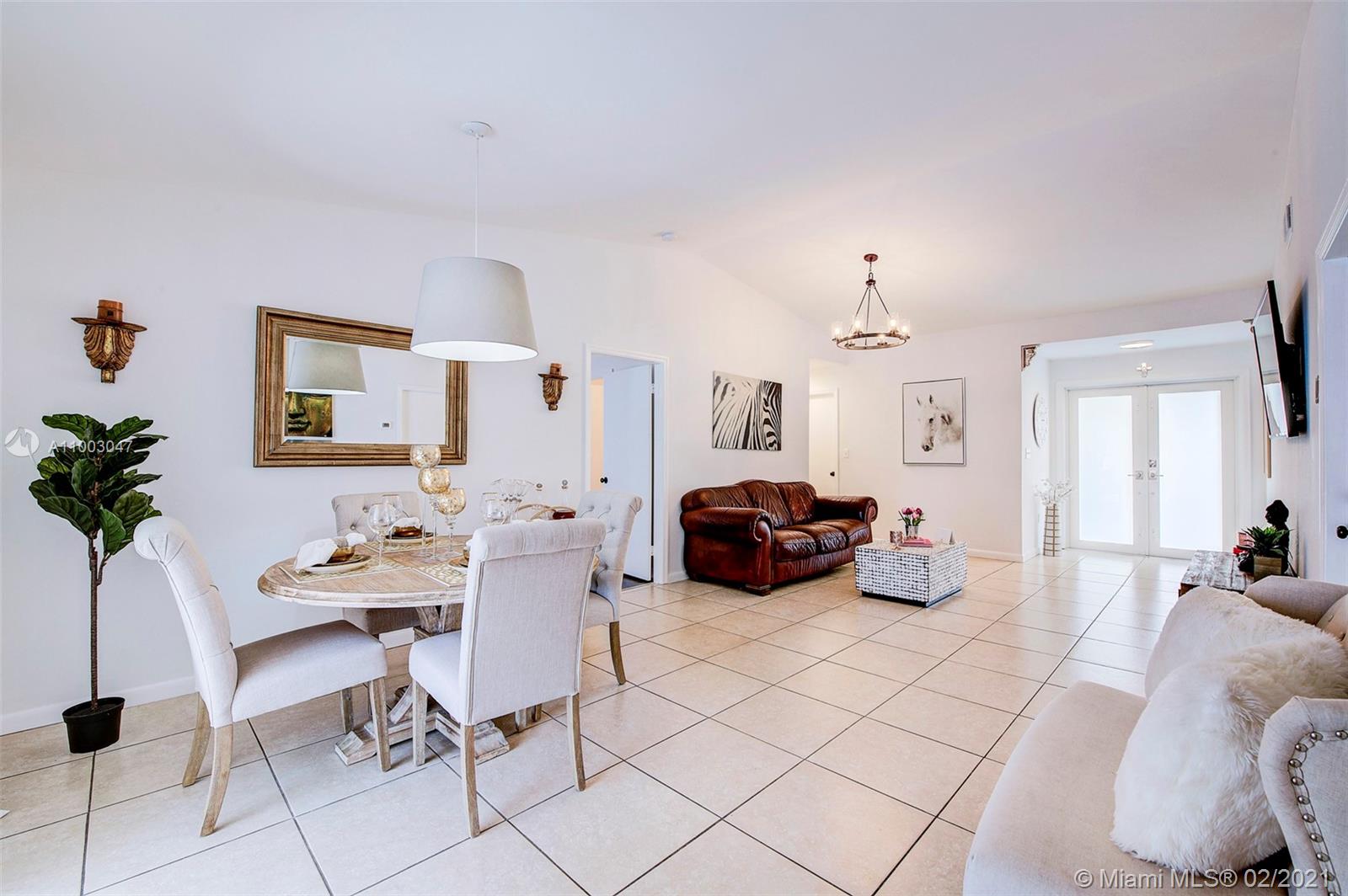 Nestled between the Dade and Broward County line, this 3/2 home with garage. This newly painted exterior and interior. Paved Driveway and backyard. Six-foot hedges for privacy. The obscured double doors welcome you to the popcorn-free vaulted ceilings. The open concept lends itself to holding conversations from the living room to the dining room area. White quartz countertops and backsplash that draw the light from the sliding glass doors and new windows. Updated kitchen cabinets and stainless-steel appliances. Porcelain tiles throughout the house and newly painted white walls. laminate floors in the bedrooms. The backyard is ready for hosting barbecues under the shade of the patio porch. Quick access to major highways, minutes from The Shops at Pembroke. This home is move-in ready!