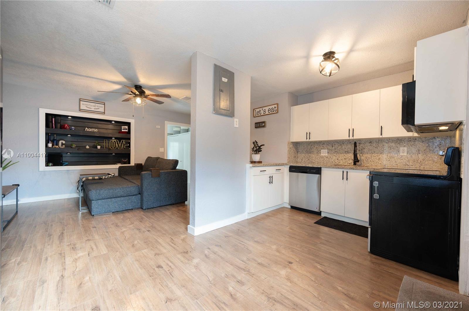 Charming Rustic inspired updated home in desirable Hollywood. 3 Beds/2 Baths plus Den. Newer Roof 2019, water heater 2018, AC in great condition, fan motor recently changed. This home features new laminate wood floors, nest thermostat, door ringer, barn door to den, adorable coffee station with gray cabinets & wood countertop. Kitchen with white cabinets, stainless steel appliances, granite counter top with granite back splash. Nice sized bedrooms with lots of closet space. One bedroom with an en suite & private access to the outdoors. Private laundry room with lots of storage space. Fenced in backyard with a mango tree, great outdoor living space with lots of room for a pool. Two driveways, can accommodate up to five cars. Centrally located. Close to beaches, airport, & major highways.