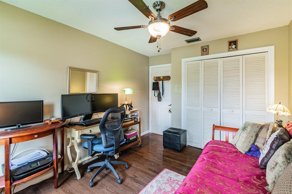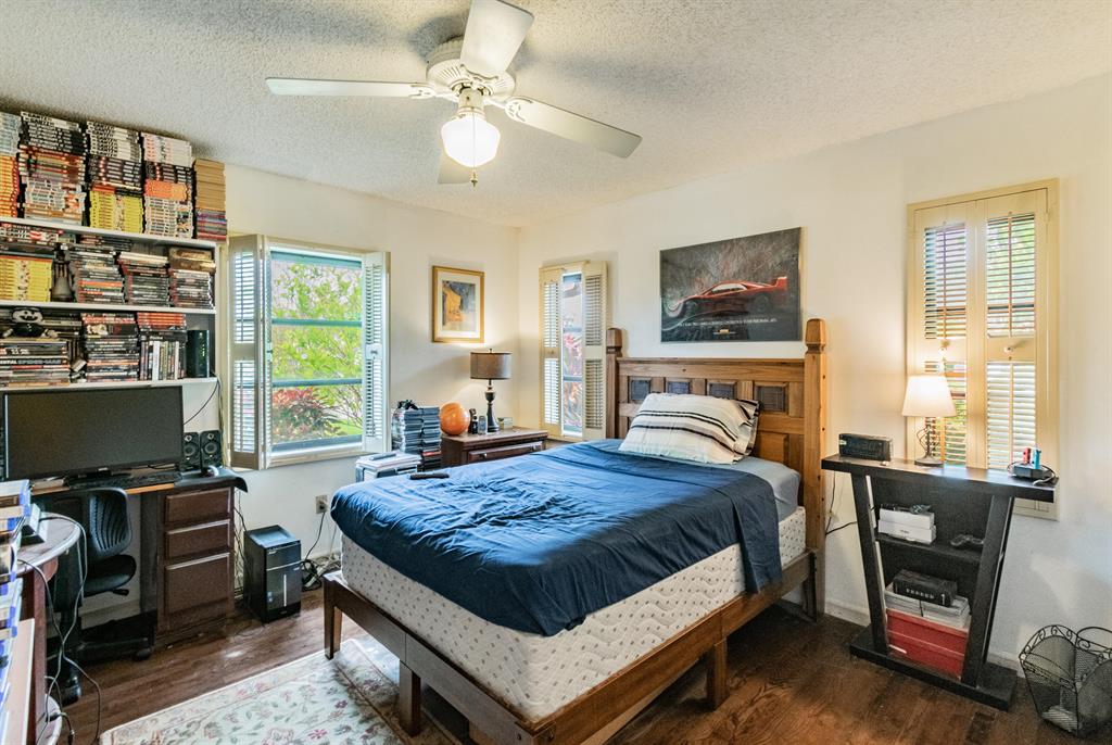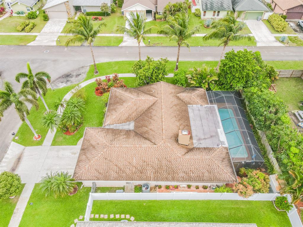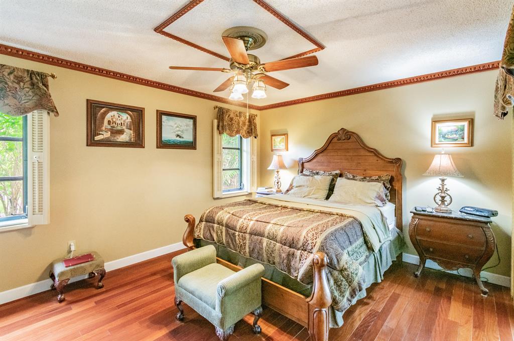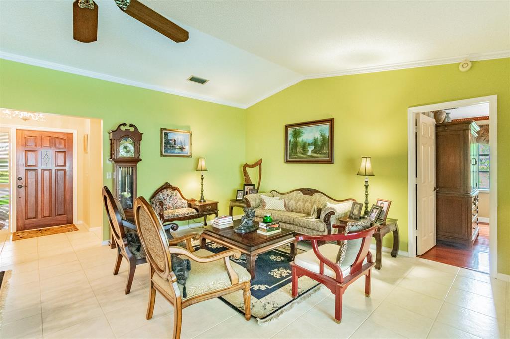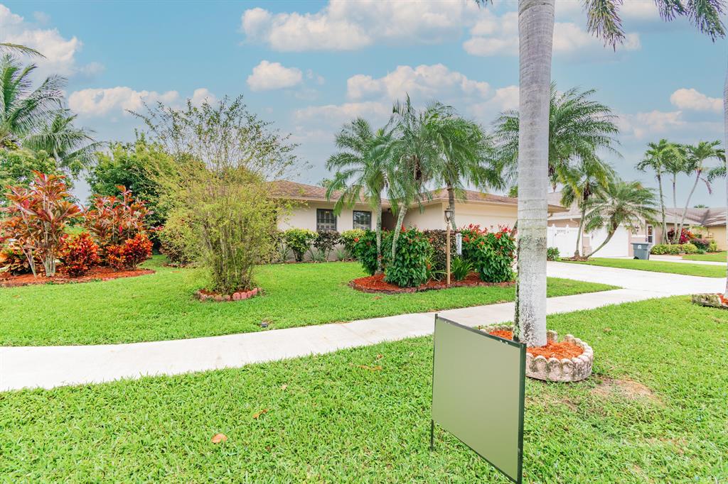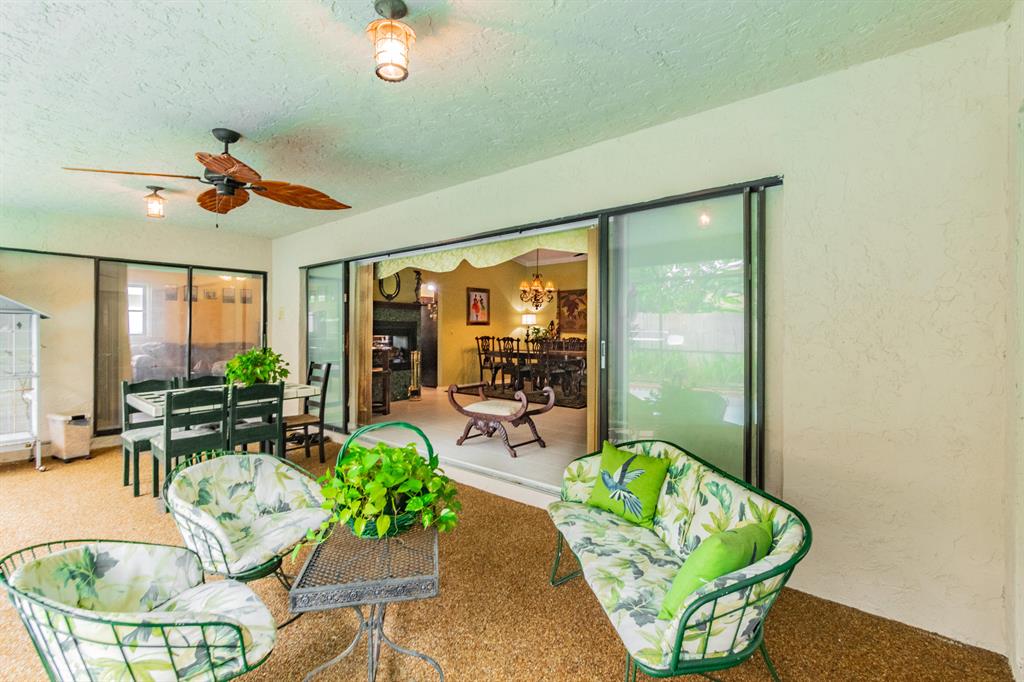 Fabulous Floridian Home with Sparkling Pool! Beautifully built in 1982 and marvelously maintained, this 3BR/3BA, 1,766sqft abode sits on a meticulously landscaped 0.17+acre corner lot. Enter the home to find a warm color scheme, crown molding, durable tile floors, and vaulted ceilings. The open-concept kitchen has stainless-steel appliances, granite countertops, wood cabinetry, breakfast bar, and an adjoining family room w/fireplace. For outdoor fun, the home includes a covered lanai and an oversized screened-in swimming pool! Every evening is a serene experience with a master bedroom, which has hardwood floors and en suite. Other features: 2-car garage, laundry room, hardwood floors in bedrooms, full hurricane protection panels, close to places of worship, and more! Call now for a tour!
