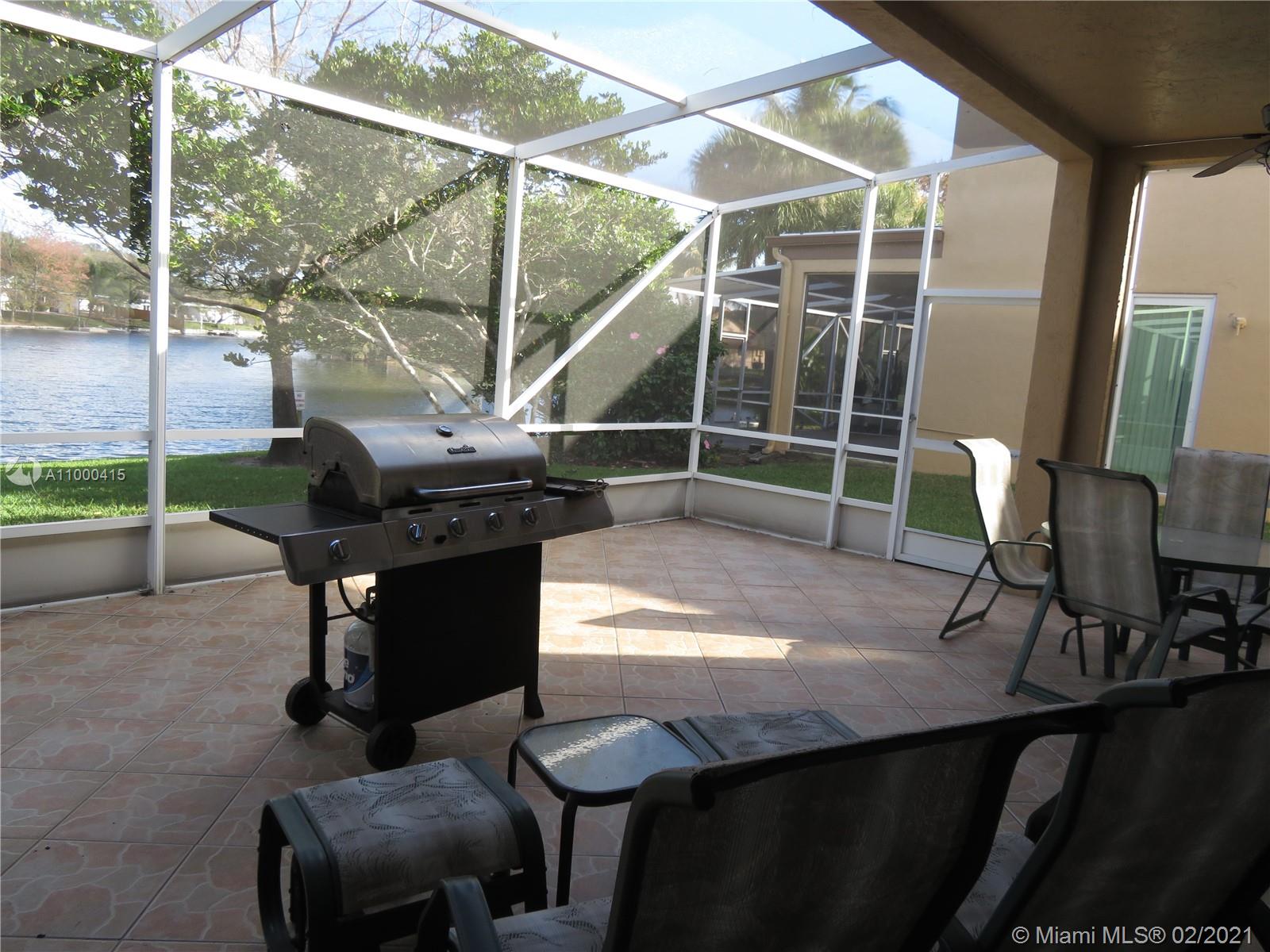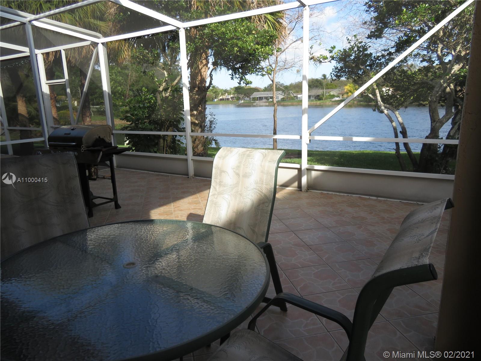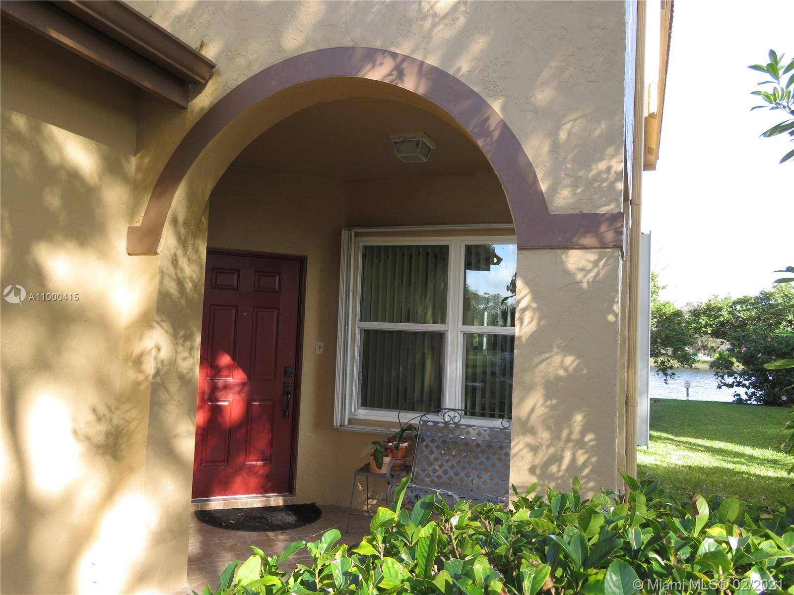 Large 2 story townhouse, corner unit with many upgrades; wide view of the lake; 1 car garage; 2 car private parking in front of your door; home has all impact windows and doors with complete accordion shutters to protect all windows and sliding glass doors; laminate and tile flooring; kitchen has granite counters; bathrooms redone; large main bedroom/bathroom overlooking the lake; newer AC; newer hurricane rated front door and garage door; incredible amount of closet space both upstairs and down; large screened porch is tiled with great lake view; crown molding and lots of attention to detail.