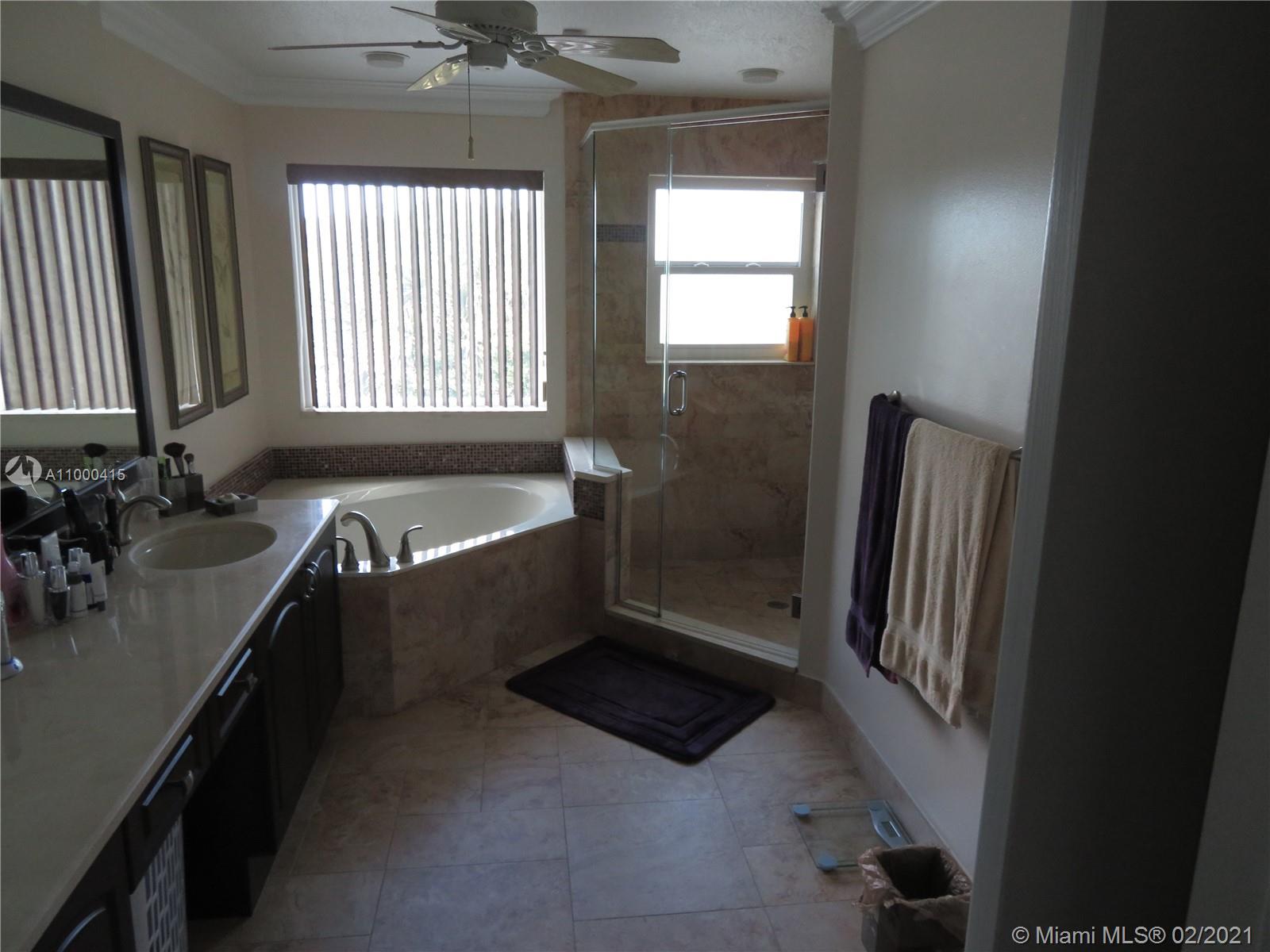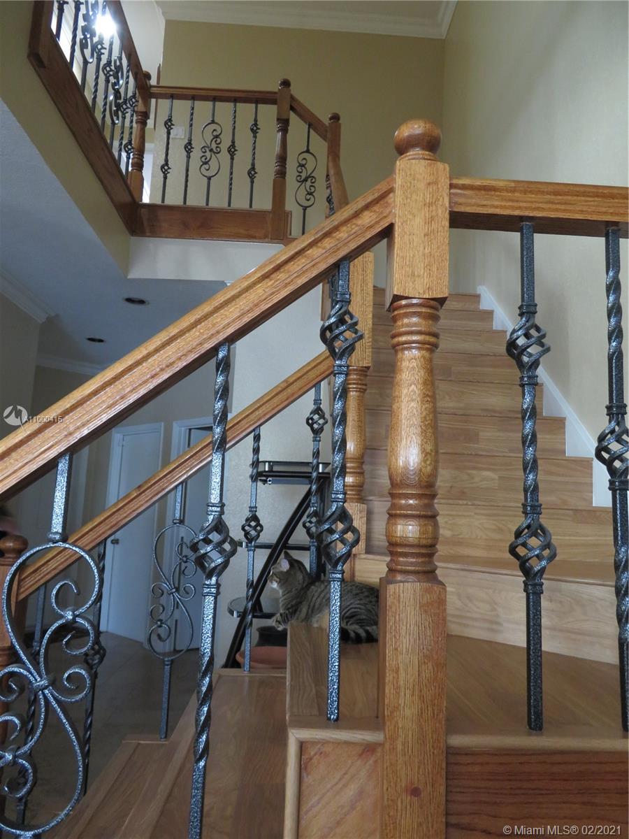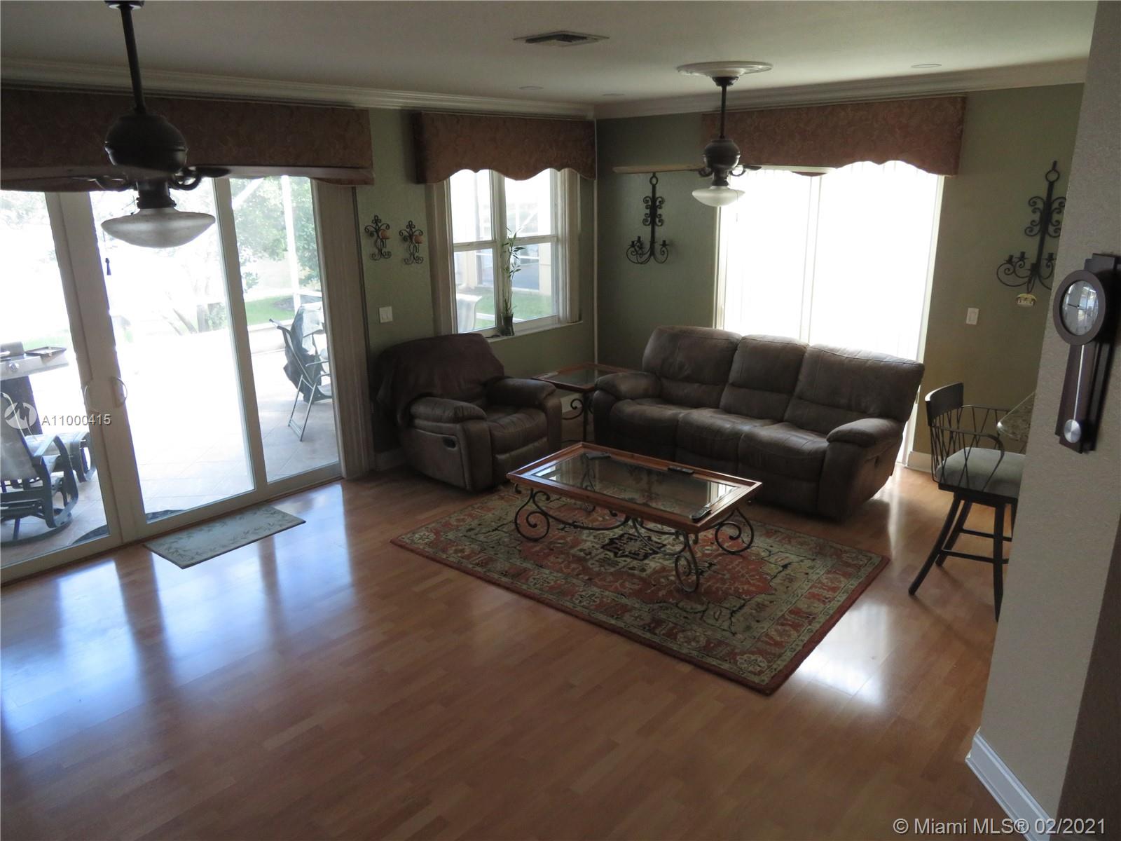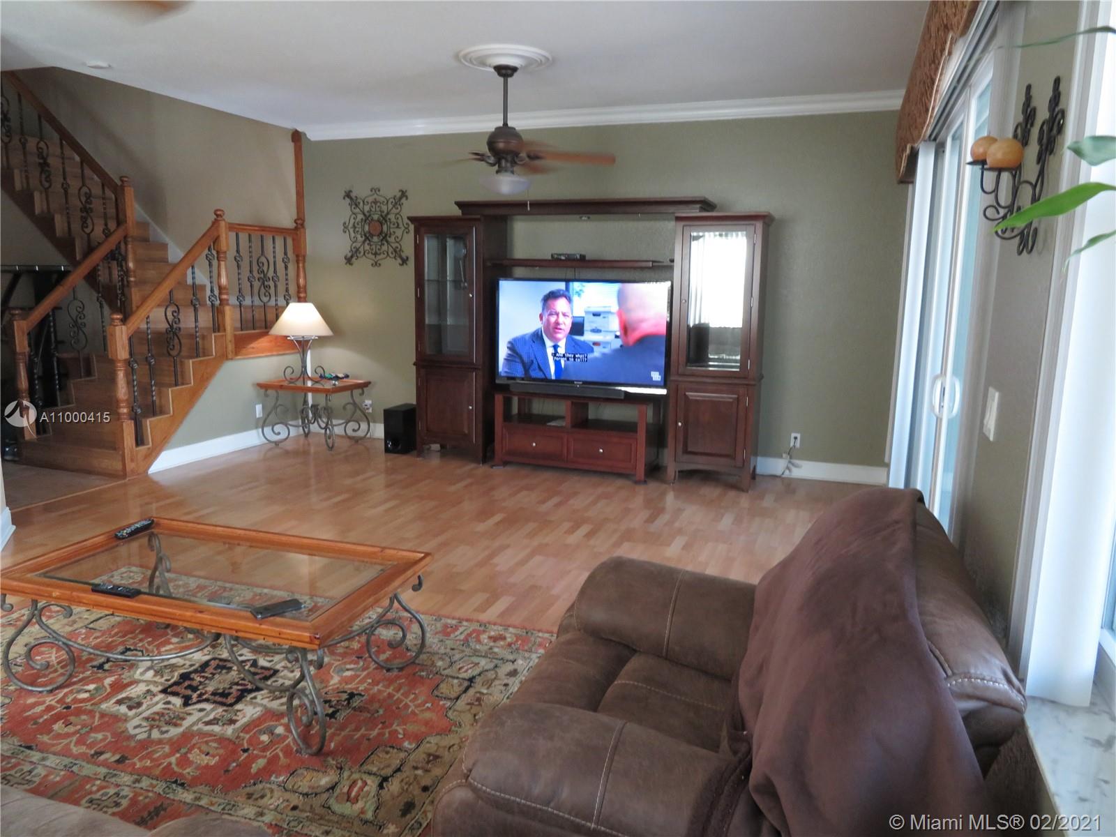 Large 2 story townhouse, corner unit with many upgrades; wide view of the lake; 1 car garage; 2 car private parking in front of your door; home has all impact windows and doors with complete accordion shutters to protect all windows and sliding glass doors; laminate and tile flooring; kitchen has granite counters; bathrooms redone; large main bedroom/bathroom overlooking the lake; newer AC; newer hurricane rated front door and garage door; incredible amount of closet space both upstairs and down; large screened porch is tiled with great lake view; crown molding and lots of attention to detail.
