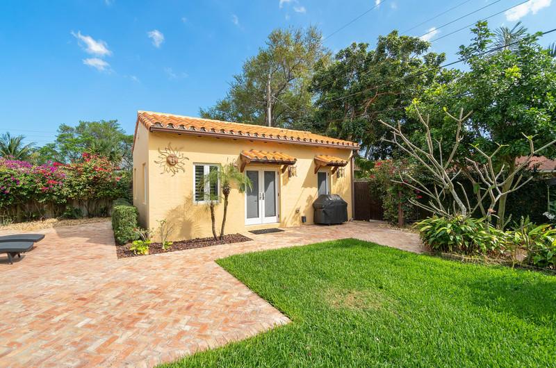 Unique Mizner 1920's era home that has been beautifully restored and expanded with custom addition. Home features; Formal living and dining rooms, lovely country French kitchen with gas stove/oven, large master bedroom suite with master bath and walk-in closet, Miami Dade wood floors, plantation shutters, impact windows and doors, crown moldings. Separate cottage guesthouse with kitchenette, wet bar and cabana bath, washer/dryer, perfect for in-law suite or home office. Large private fence backyard, plenty room for a pool. Inviting covered lanai. Lovely landscaped with Chicago brick walkways in front and back area of the property. 2.5 car garage! Close to downtown Boca Raton, beaches, restaurants, Boca Raton tennis facilities, library, and parks! No HOA! This home is a total dream!