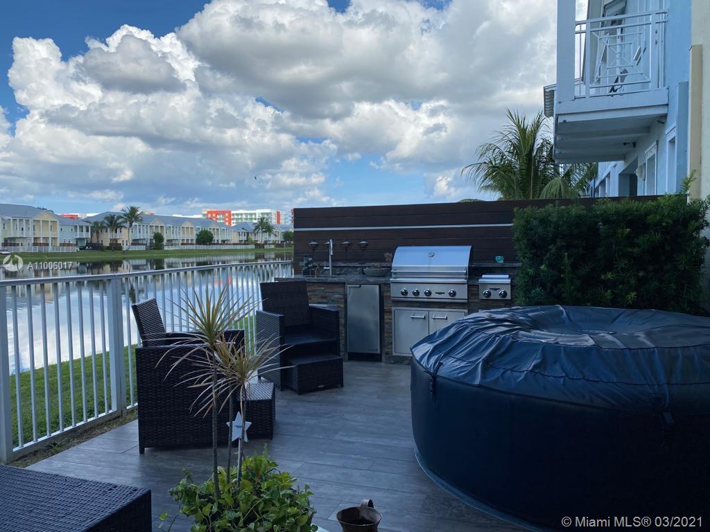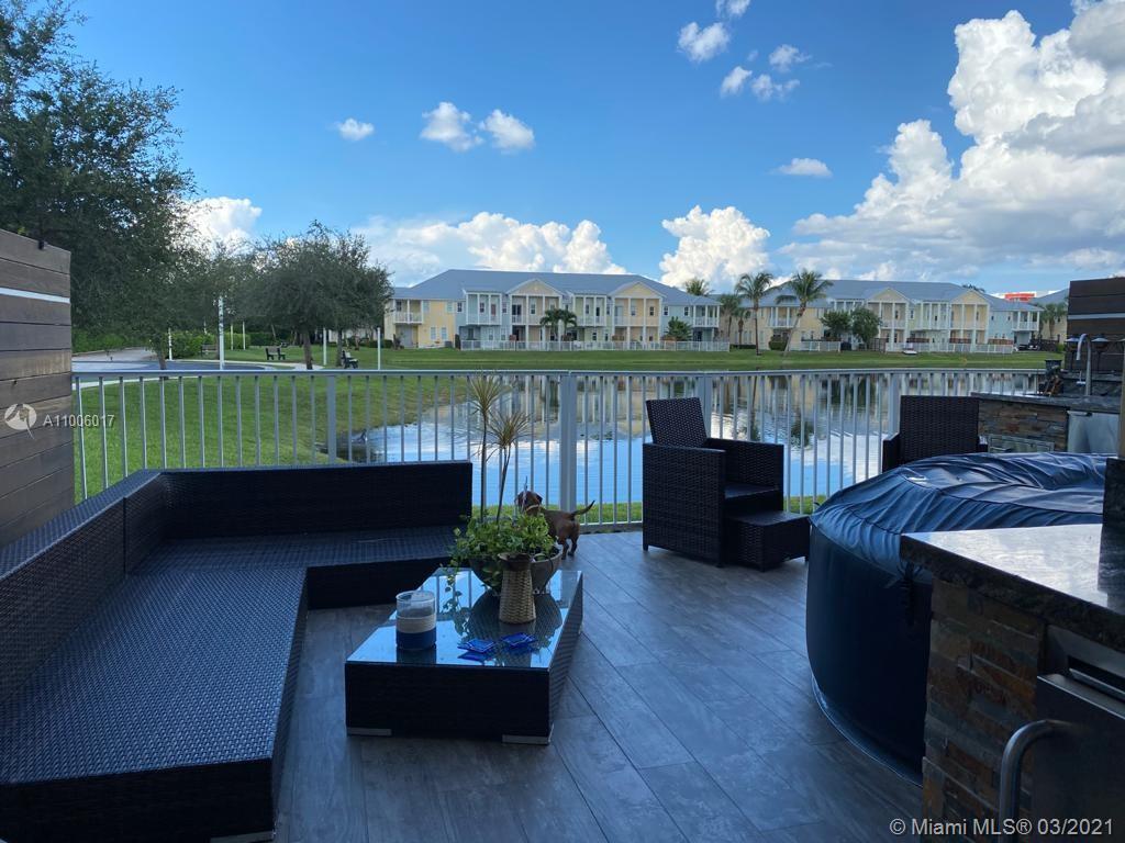 Corner unit ,biggest floor plan 4 Bedrooms 3 1/2 Baths, Pristine condition , Marble floors on first floor wood on stairs and second floor fully built closets, glass handrails, outdoor kitchen, Lake view, Impact windows. Must See... Lamps and TVs are not included on sale .
