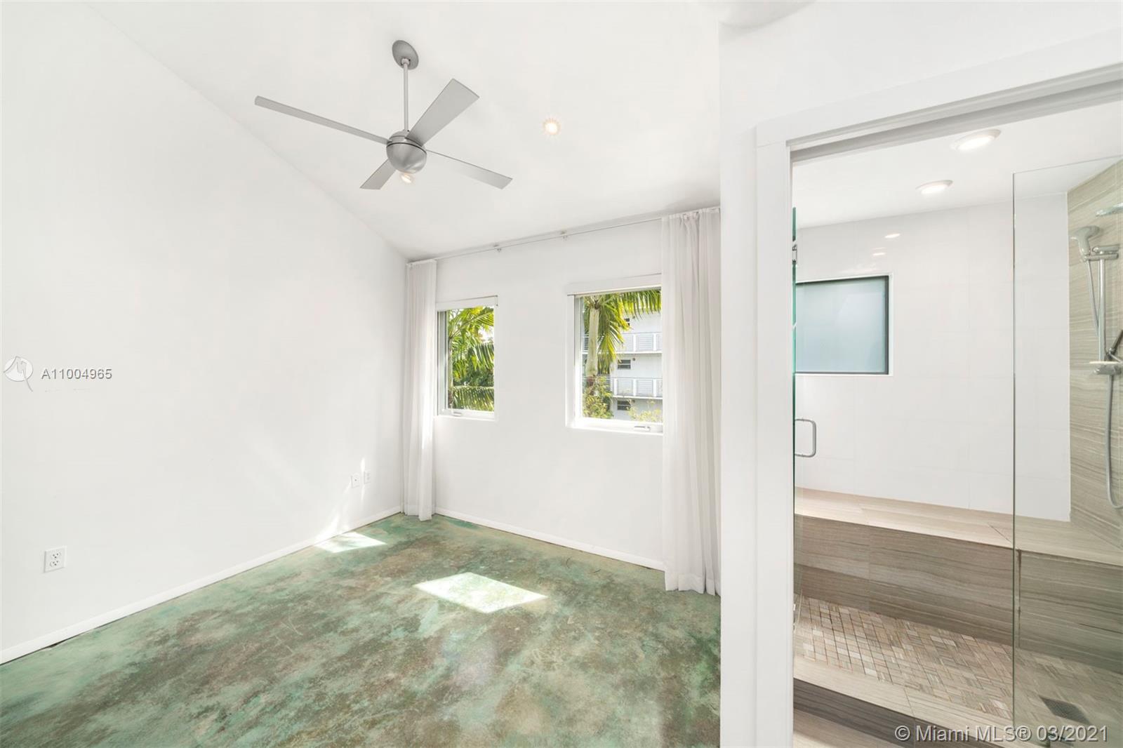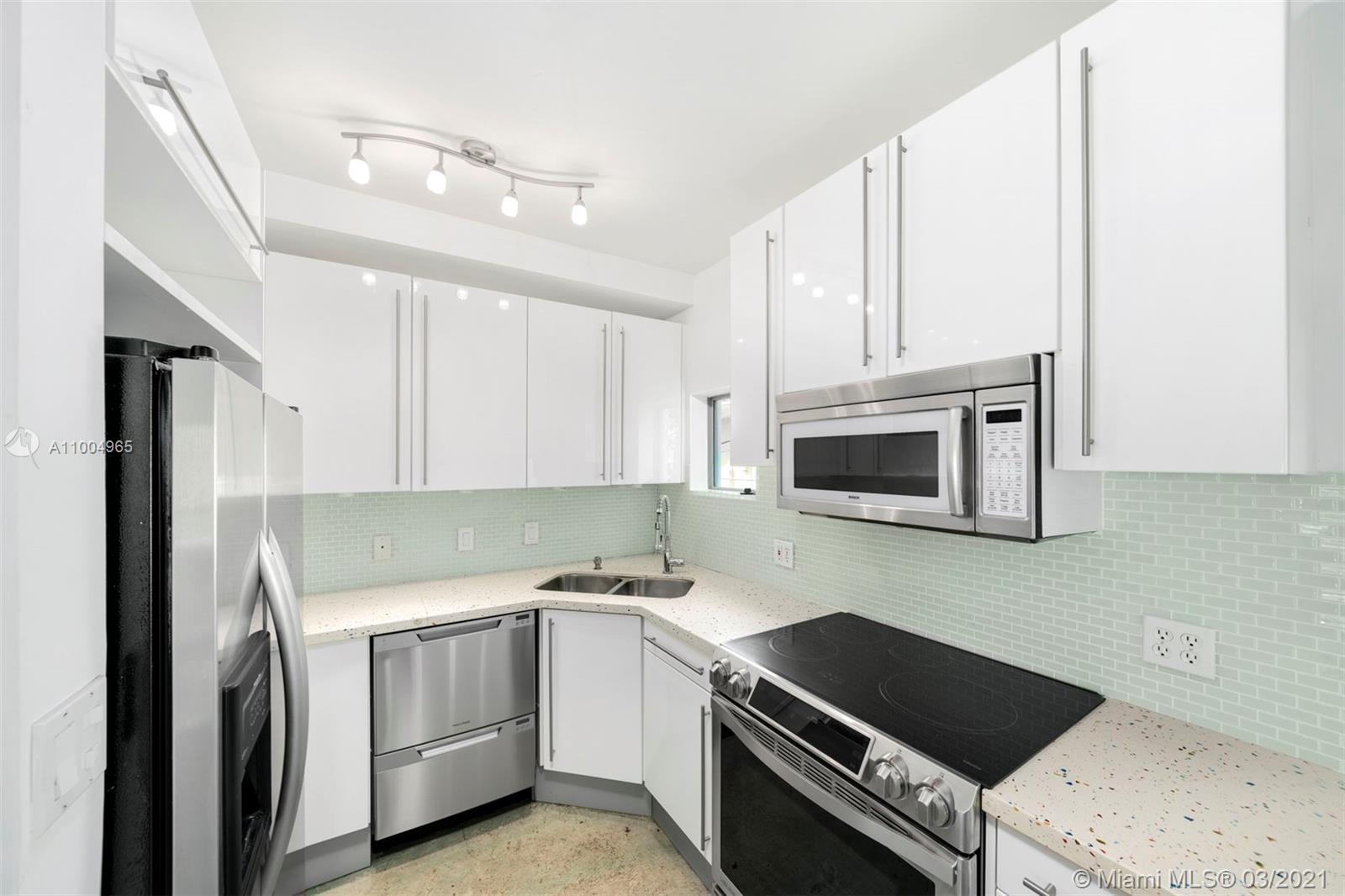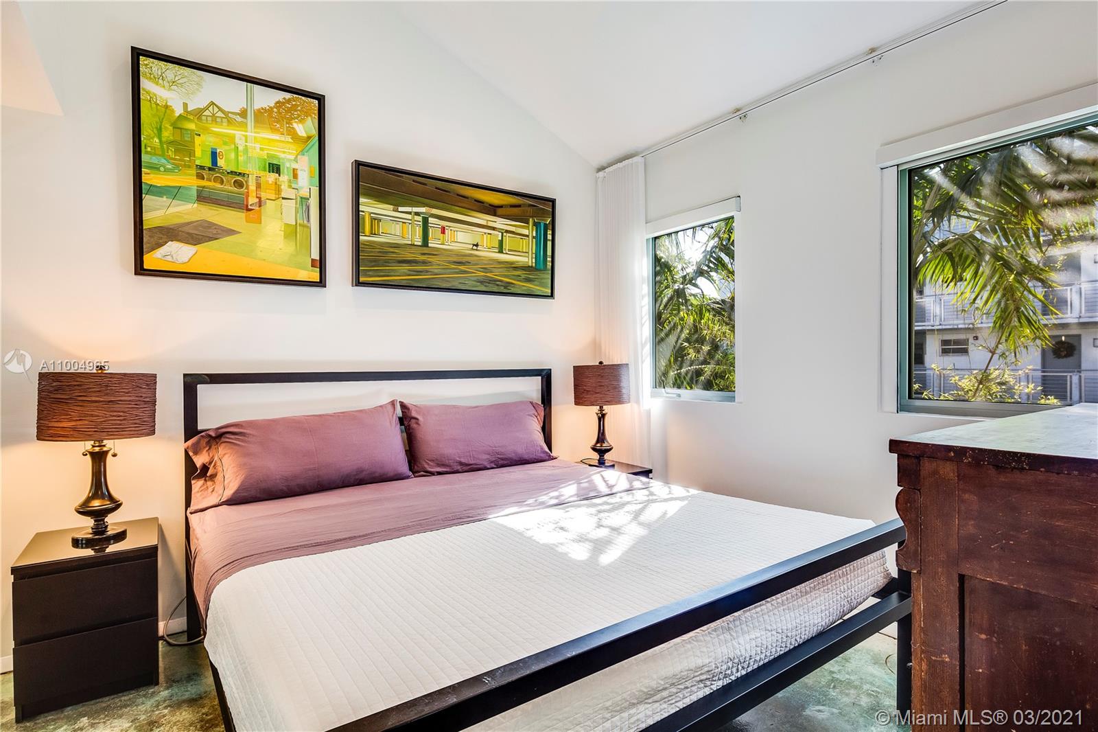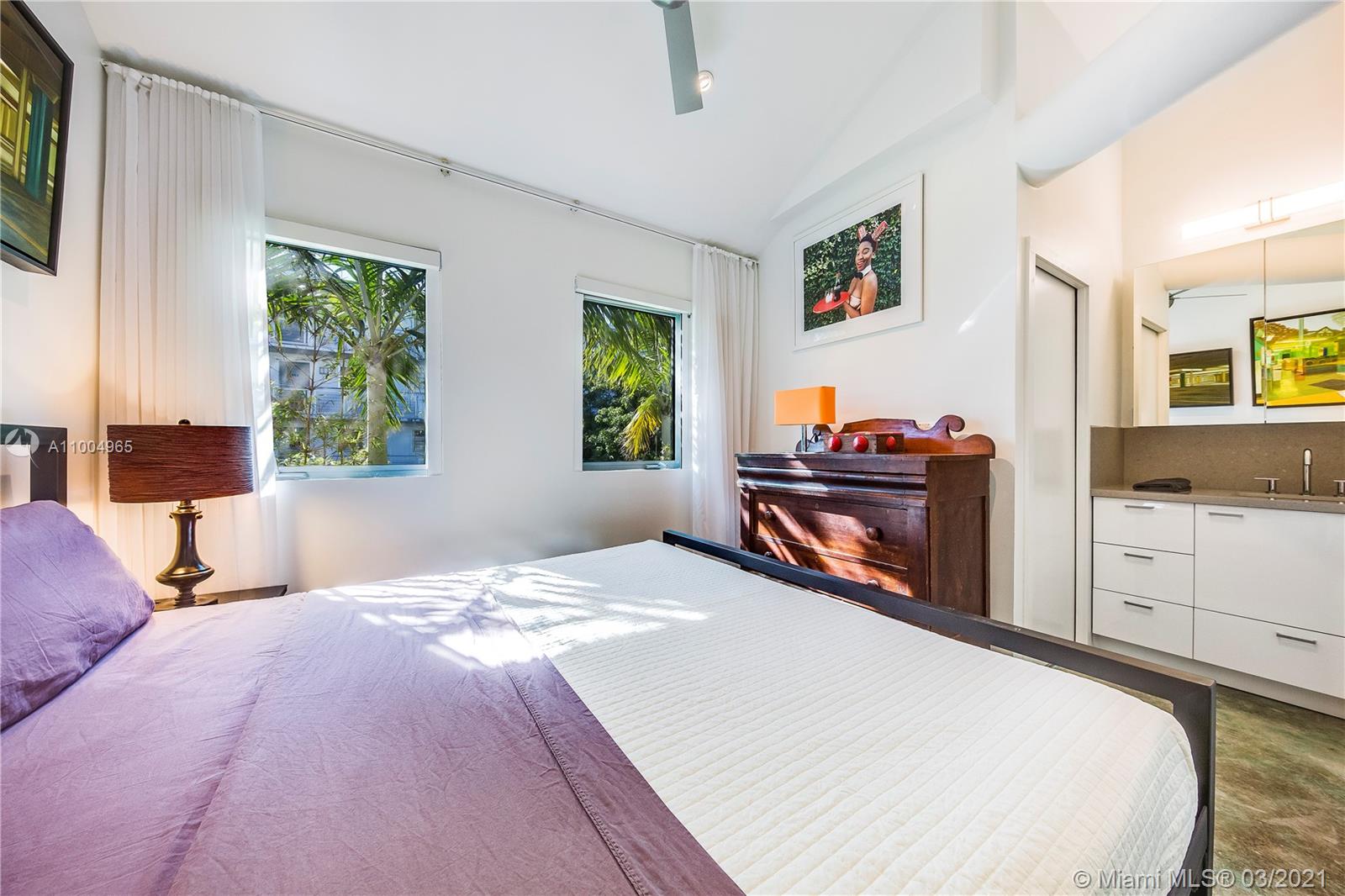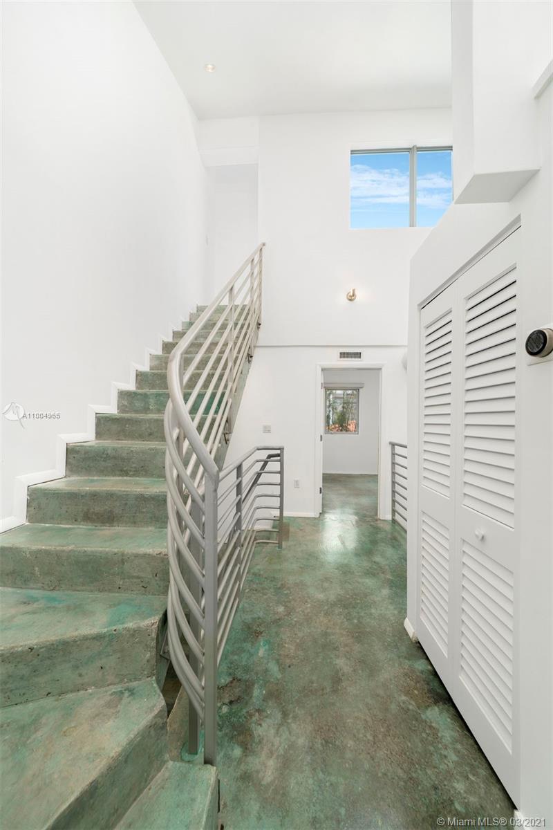 Modern living in the heart of south beach! This gorgeous 2 bedrooms, 2.5 baths, tri-level space boasts soaring 28' ceilings, complete with luxury finishes and appliances. The private rooftop terrace and balcony off the dining area provide ample outside enjoyment. Impact windows and beautifully stained concrete flooring throughout. Includes 1 covered assigned parking in a gated garage. Feel at home in this gated, quiet and secure building. Sunny, unbeatable location with low maintenance fees. Walk to Flamingo Park, the Beach, Lincoln Road, shops and restaurants. Publix, Total Wine and Whole Foods are just around the corner. This exclusive and private residence gives you the opportunity to enjoy luxury in a prime location without the hassle of high rise living.