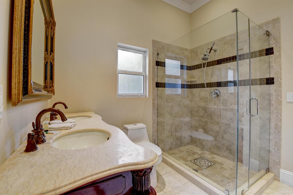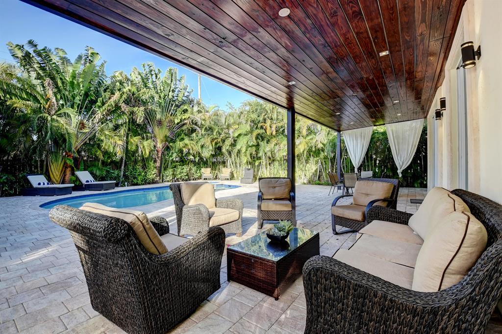 One of a kind masterpiece, resort feel house. This custom re-built 2015 East Boca pool home pool situated on an over-sized lot offers 5 bedrooms, 4 full baths plus 1 office/fitness room with the master bedroom downstairs. Features include underground pipes replaced with pvc, led lighting, 11 ft ceilings, 3 zone ac, all block and concrete exterior, impact windows, heated pool and jacuzzi, separate 600 sq. ft garage structure with high ceilings, iphone enabled cameras, central vacuum system. The upstairs offers a large second living area along with bedroom and bath, great for a guest suite with a separate entrance. You'll enjoy the large covered patio surrounded by Eureka Palms for privacy creating the resort tropical lifestyle feel all day long.