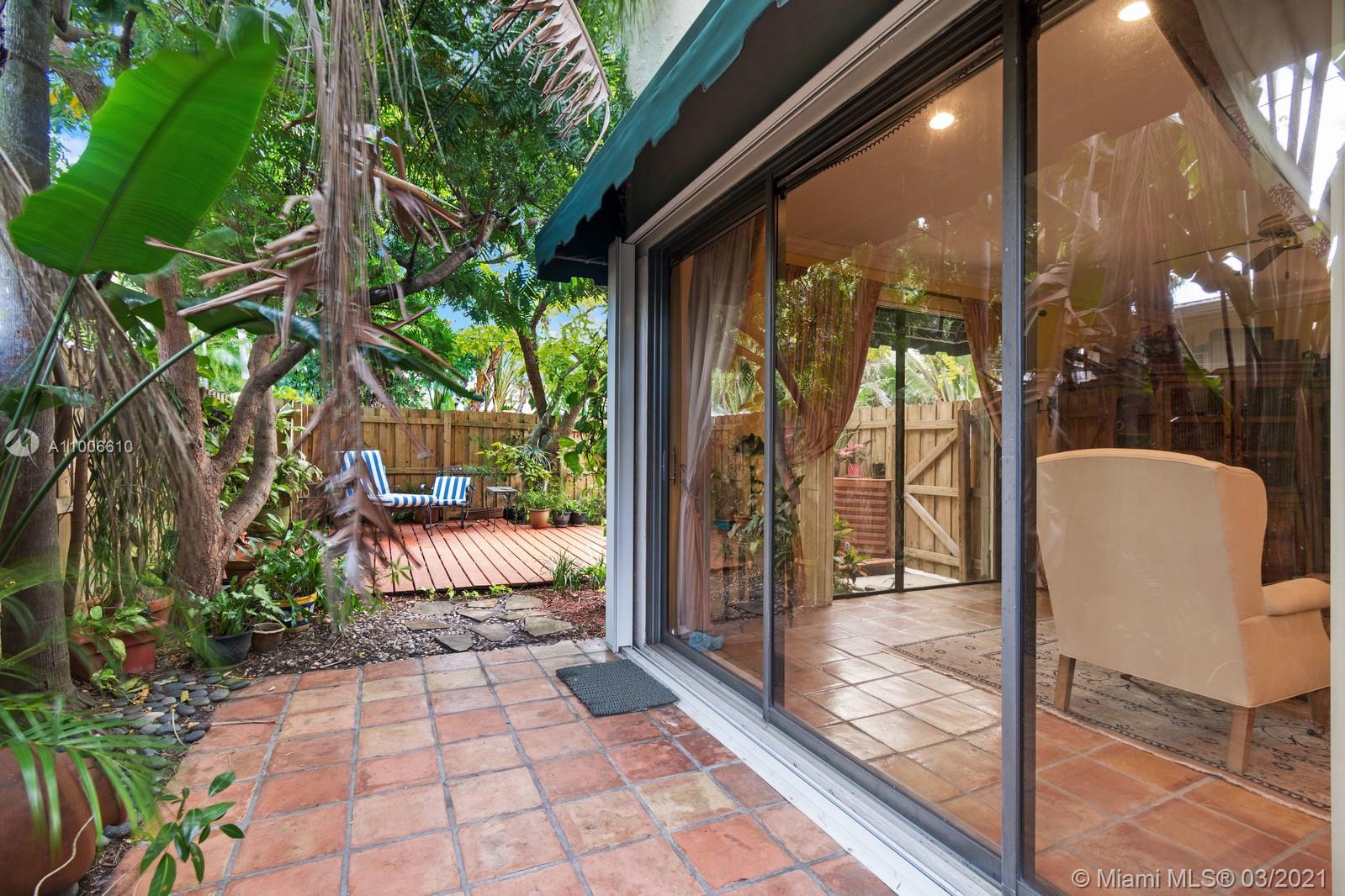 East Fort Lauderdale Living at its Finest! Nestled in the heart of Victoria Park this 1418 SF charming 2 bedroom 2.5 bathroom townhouse is perfectly situated within walking distance to Las Olas, fine dining, shopping, less than 2 miles to the beach, and just a short ride to Ft. Lauderdale Airport! The secluded interior features a bright and cheery great room with garden views, brand new remodeled kitchen offering stainless steel appliances and granite countertops, spacious master suite with a walk in closet and renovated master bath, large guest suite, remodeled powder room, washer and dryer upstairs. The exterior offers a completely fenced patio and garden that is beautifully landscaped, charming balcony, impact windows upstairs, hurricane shutters down, and 2 parking spaces