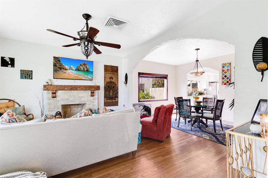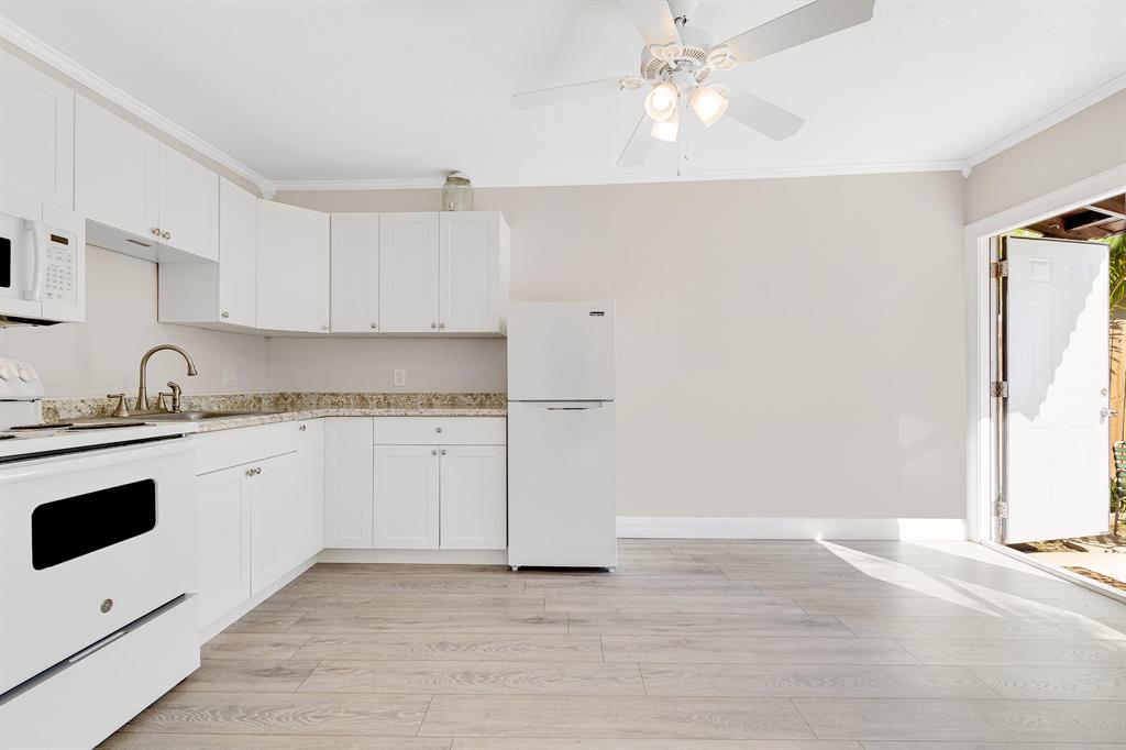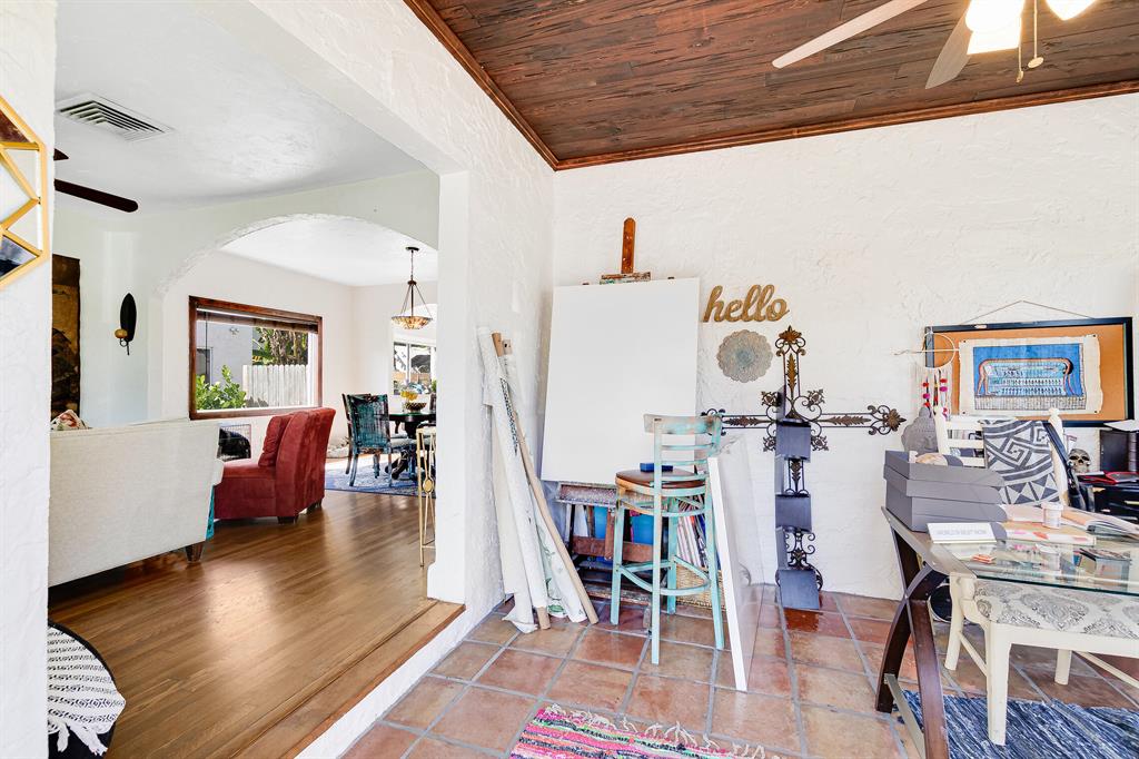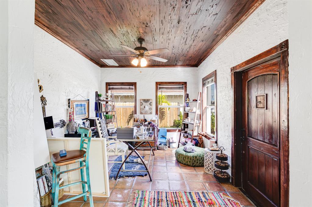 Charming 1928 Spanish Style 2/1 house with 1/1 guest house out back. This property has been completely renovated. Both the main house and the guest house have new roofs (2019), and new impact windows throughout. In the main house you will find the original Pecky Cypress ceiling, refinished Spanish tile, original refinished wood flooring, and a beautifully renovated kitchen with stainless steel appliances, quartz countertops, a beautiful glass tile backsplash, and soft close drawers and cabinets. The seller did not spare any expense when updating this kitchen. There is no lack of charm here. The 350 square foot guest cottage has been completely updated as well. It includes a kitchen, living space, private bedroom and bathroom, and for your convenience, it's own