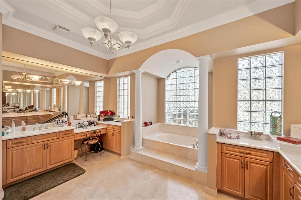 THIS RENOIR MODEL IS SITUATED ON A BEAUTIFULLY LANDSCAPED 1/3 ACRE CUL-DE-SAC LOT. JUST A FEW OF THE MANY EXQUISITE DETAILS OF THIS HOME INCLUDE: 24''X24'' SATURNIA ''GRADE A'' MARBLE LAID ON THE DIAGONAL & KNOCKDOWN WALLS THROUGHOUT LIVING AREAS. AN OVERSIZED LAUNDRY ROOM; LARGE KITCHEN WITH 2 PANTRIES, WOOD CABINETS, GRANITE COUNTERTOPS, UPGRADED APPLIANCES WITH DOUBLE SELF CLEANING WALL OVENS, OVERSIZED ISLAND AND SEPARATE EATING CAFE. HUGE FAMILY ROOM WITH 20 FT CEILINGS & SURROUND SOUND WIRING. 1ST FLOOR PRIMARY SUITE WITH DOUBLE STEP COFFERED CEILING, HIS & HER WALK-IN CLOSETS, SITTING ROOM THAT IS 12X10 USED AS OFFICE. MASTER BATH HAS 18''X18 SATURNIA ''GRADE A'' MARBLE LAID DIAGONALLY WITH SHOWER WALLS MARBLED TO CEILING, MAPLE CABINETS,