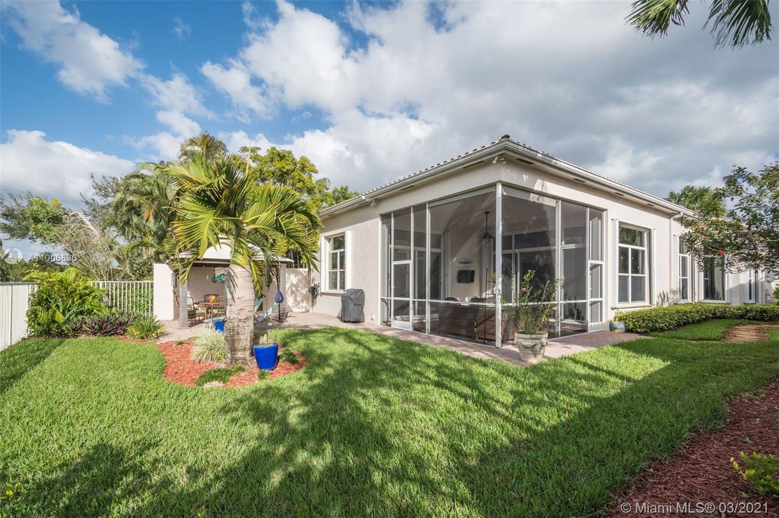 This spacious 3 bed/3 bath waterfront home in Bay Pointe - Weston Hills CC has it all. 3rd bedroom is used as an office. Open floor plan with 14' ceilings. Custom Kitchen w/ stainless steel appliances, granite countertops, built-in bar with fridge, under cabinet lighting and more. Master bathroom has been completely renovated with Maxx tub, walk-in shower and separate vanities. Plantation shutters. LED lighting. Enjoy incredible sunset views from your oversized screened in patio with large backyard (room for pool). Accordian shutters throughout. 2-car garage. Fully maintained community including lawn/landscaping, fertilization, pressure cleaning and painting.
