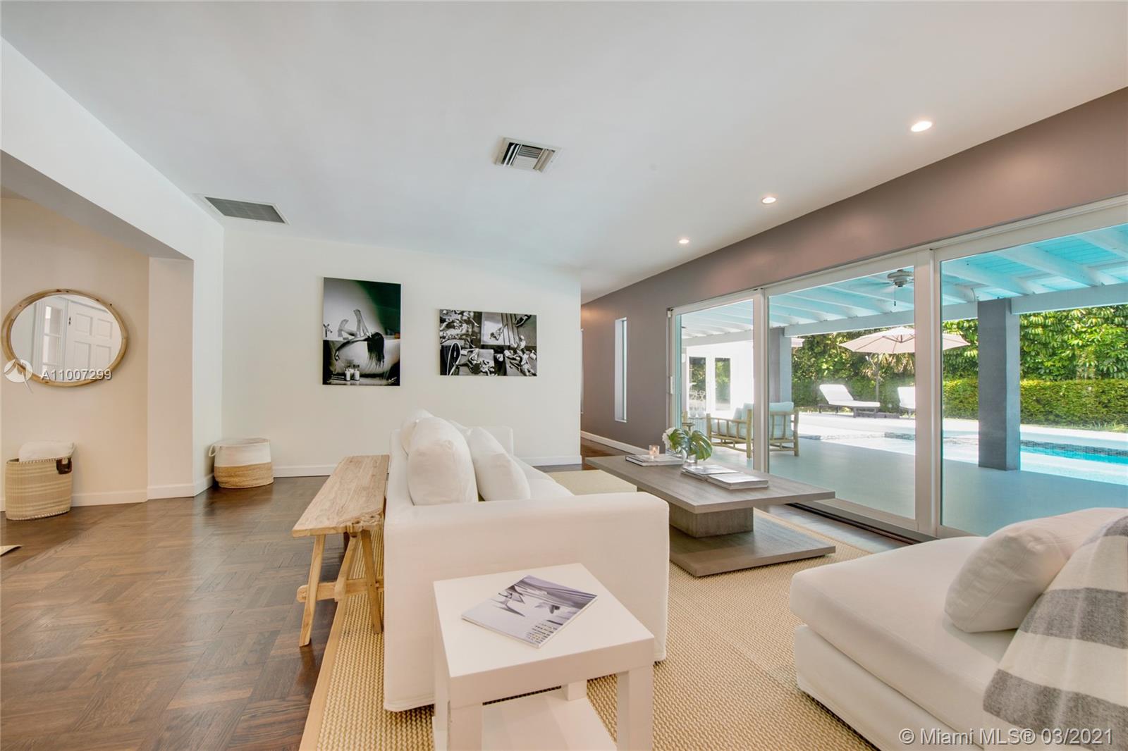 Beautiful & bright North Pinecrest home . 4b/4b + family room, 3299 SQ FT Living area ,in more that one acre . Lush tropical garden with oversized pool and a large covered terrace, plus a spacious gourmet kitchen, makes it a PERFECT house for easy indoor/outdoor entertainment. Cozy master bedroom with spacious walk-in closet . Noble tile floors in the kitchen and woods flooring in the bdr and living areas. This is a fabulous family home just blocks away from Pinecrest Community Center with its art venue, park, public library, gym & the charming Pinecrest Farmers Market. Great private/public schools close by, Gulliver and Pinecrest Elementary School. Don’t miss this wonderful lifestyle !