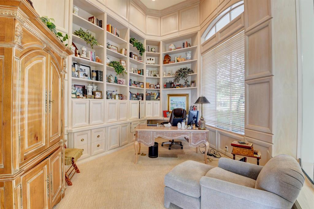 Magnificent one-story home located on an OVERSIZED, HALF-ACRE LOT in the Lake Estates section of St. Andrews CC. Open, split-bedroom floor plan with four bedrooms + office. The interior is light and bright, with soaring volume ceilings and floor-to-ceiling windows that feature impressive lake & golf course views from every living space. The kitchen has 2 sinks, double ovens, a new fridge, temperature-controlled wine closet, and more. Oversized master suite has large custom walk-in closets, 2 showers, 2 W/Cs, and 2 sinks. All guest bedrooms are ensuite. New roof (2018). Enjoy sprawling lake & golf views and serene sunsets from the large patio area, featuring an oversized pool with spa, summer kitchen, built-in BBQ, and abundant lawn space.