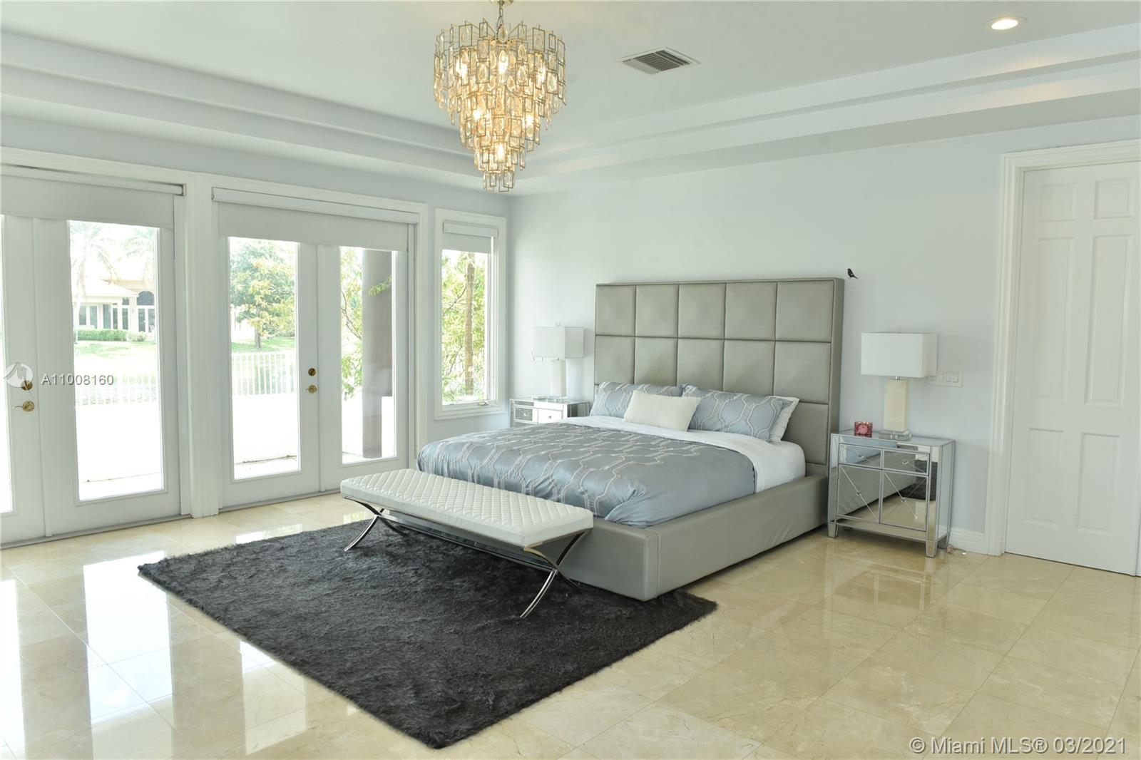 Gorgeous Estate Home in the Enclave Circle, the most prestigious section of Grand Palms Gulf & Country Club. This home sits on a water front lot. Indoor patio with pool, bar and covered area for outdoor enjoyment. The split floor plan offers 5 bed, 4 & 1/2 bath. Master suite with vaulted ceiling, open view to the lake, his her w/in closet, master bath with separate tub-shower & his-her vanity. Formal dinning, wine cellar, very spacious kitchen, cook island & separate breakfast sitting area open to large family room with pool views, covered sitting @ outdoor patio area. Great location close to A+ schools, shopping, dining, highway & transportation. HOA includes: basic cable, ADT alarm, man guard main gate & second gate into the Enclave community.